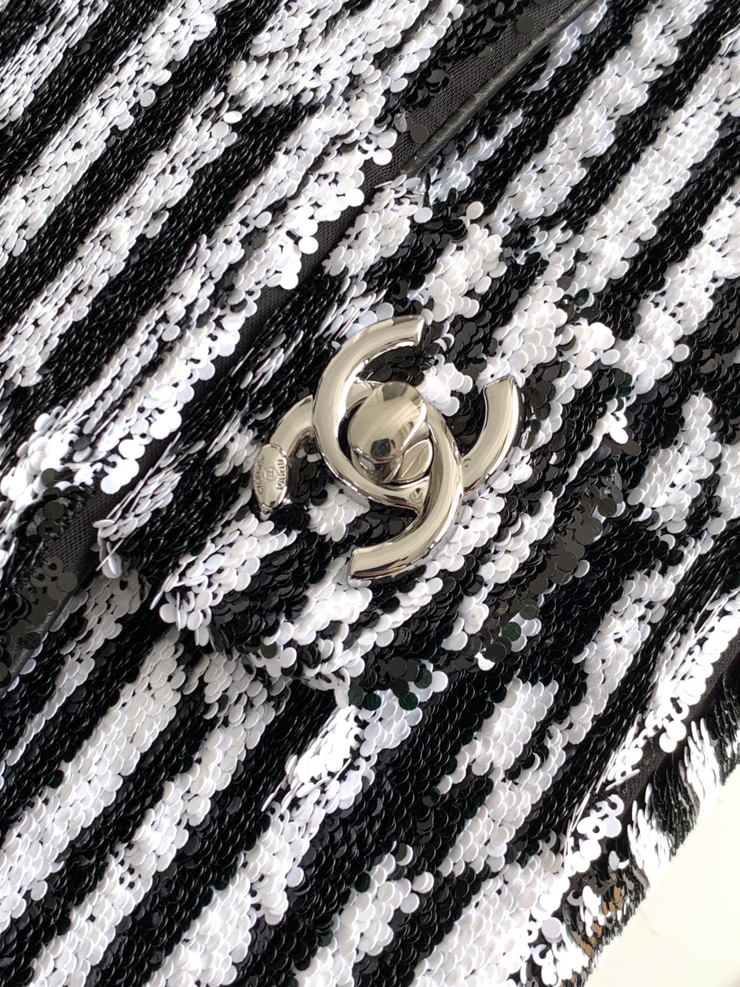 flap bag medium 25 black white sequin silver hardware
