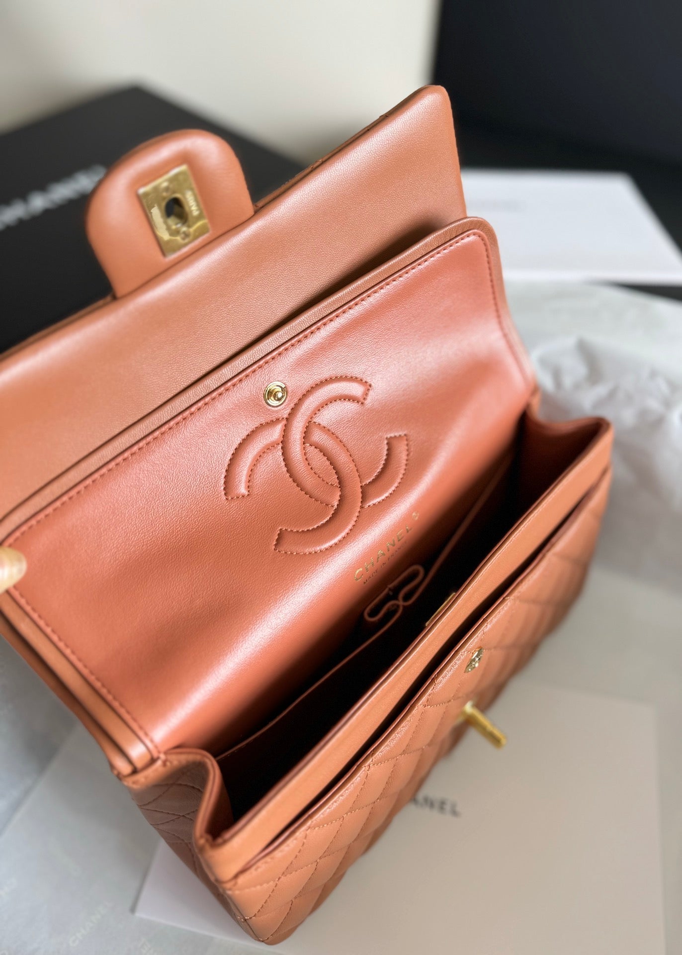 flap bag medium 25 brown lambskin gold hardware