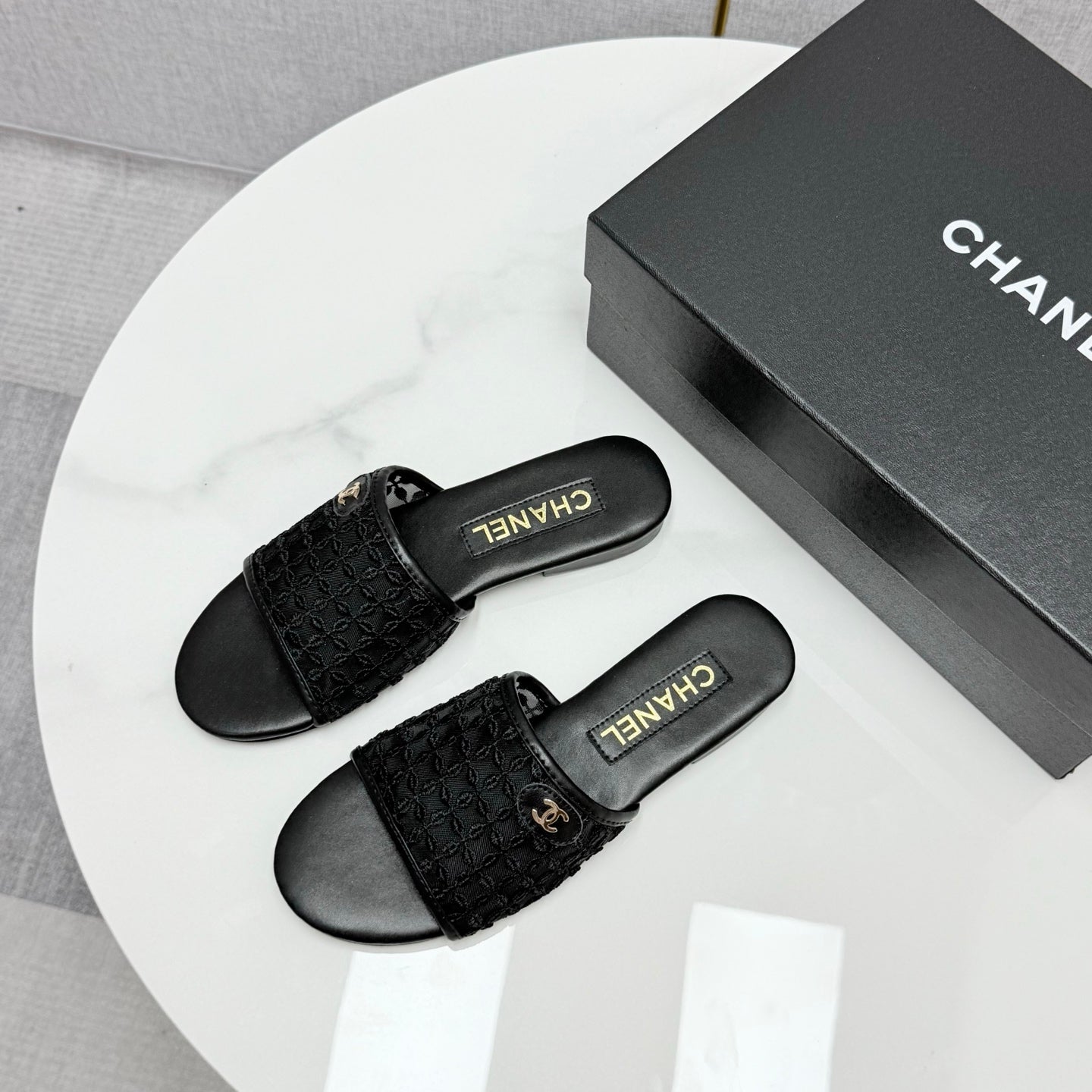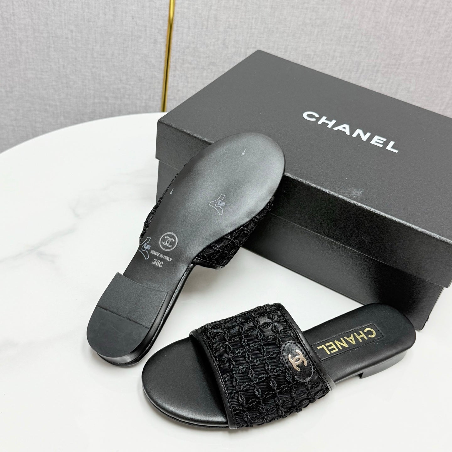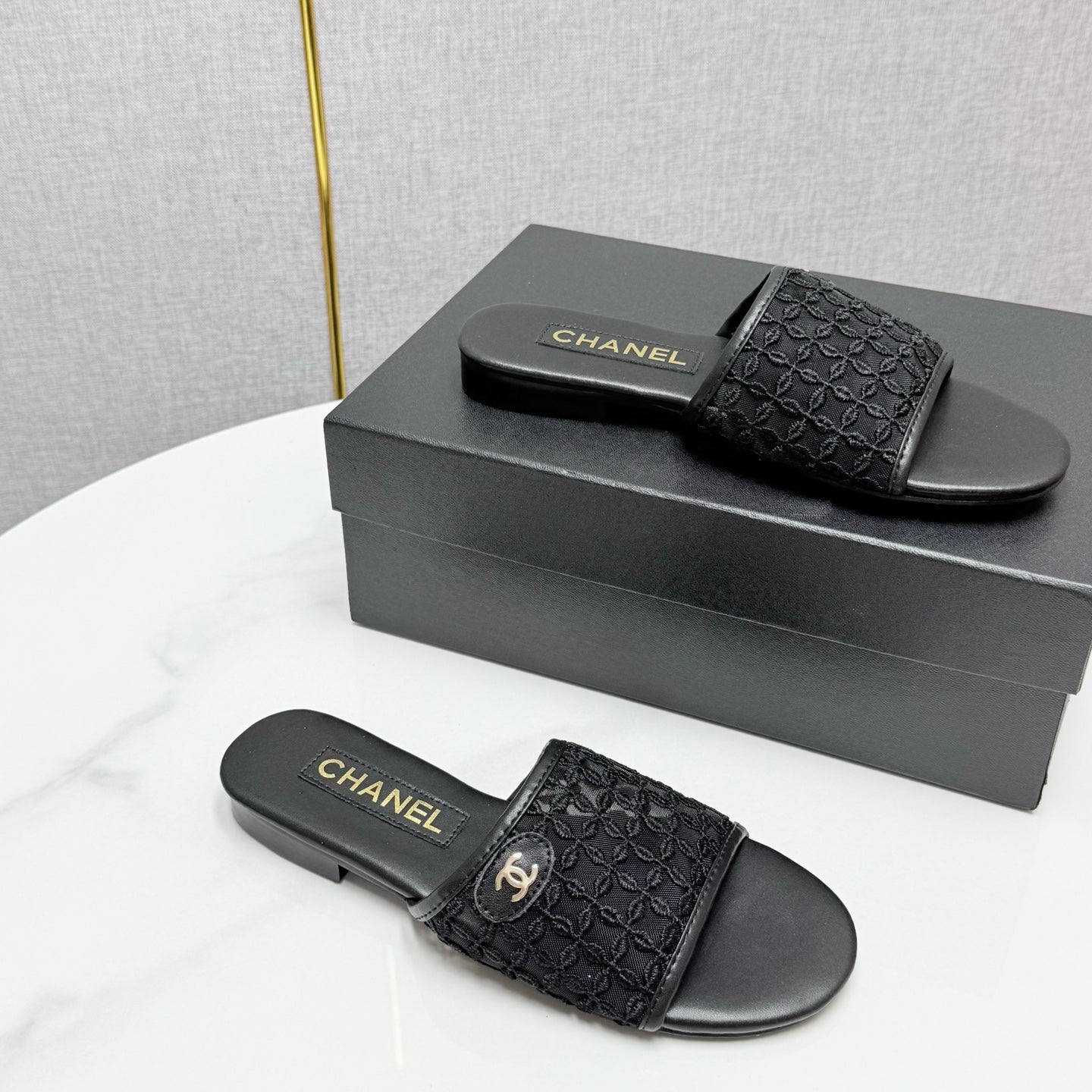 CC 25 Flat Mule Sandals Black Mesh And Sheepskin 368806