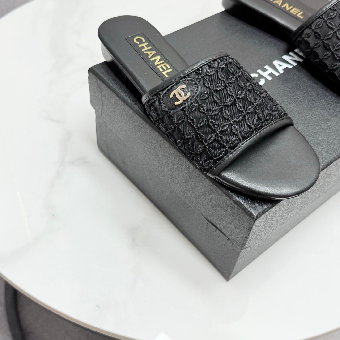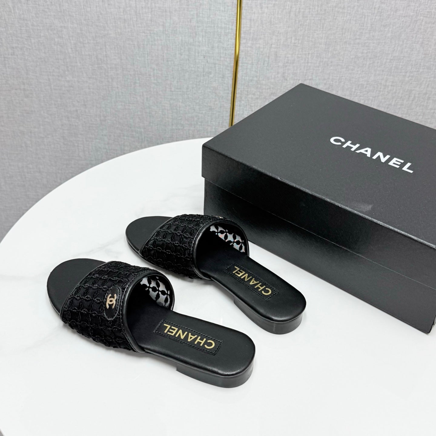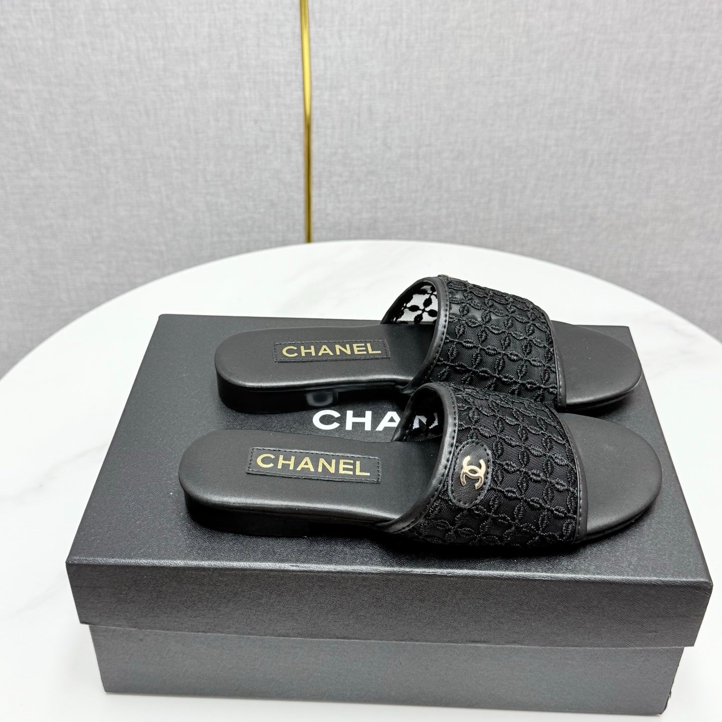 CC 25 Flat Mule Sandals Black Mesh And Sheepskin 368806