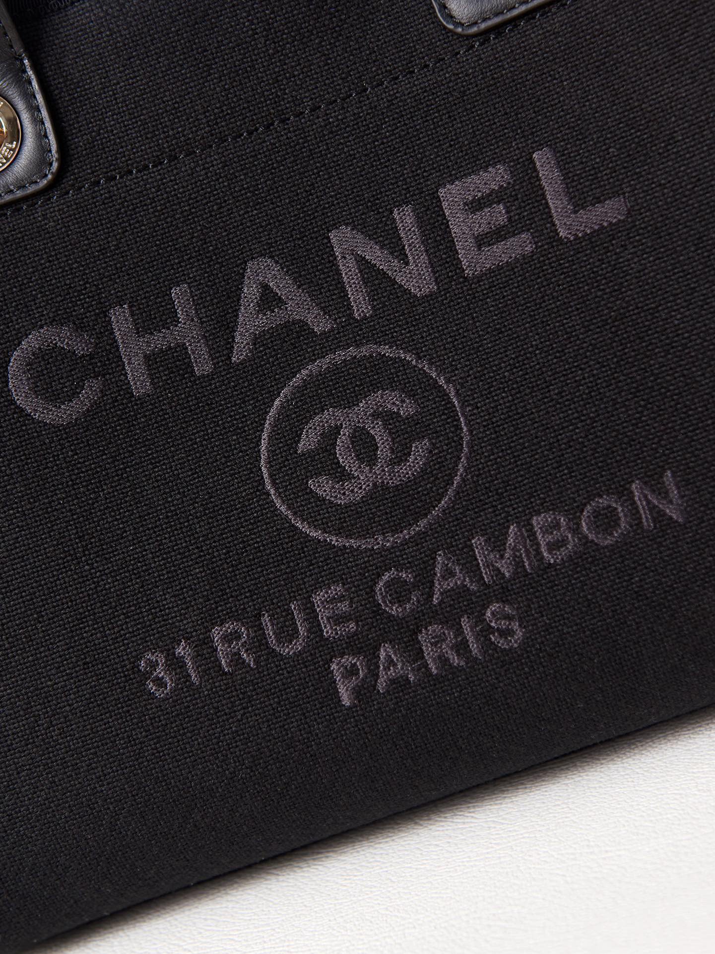 cc deauville shopping small tote 33cm black mixed fabric calfskin