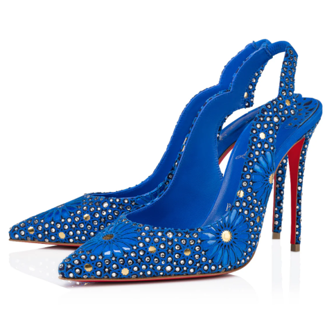 CL Hot Chick Sling Moucharastrass Pumps 70mm Calf Leather Electric Blue