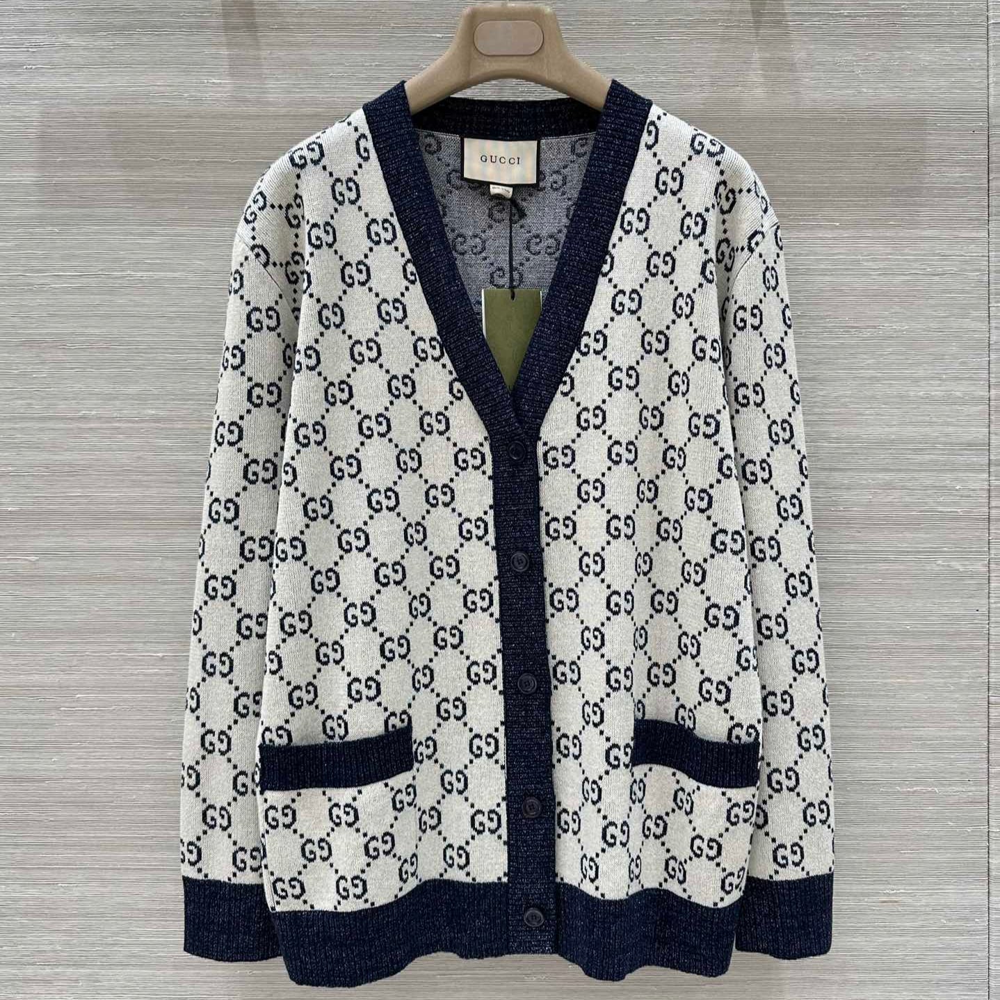 Gucci 2025 GG Cardigan Blue Gray Cotton