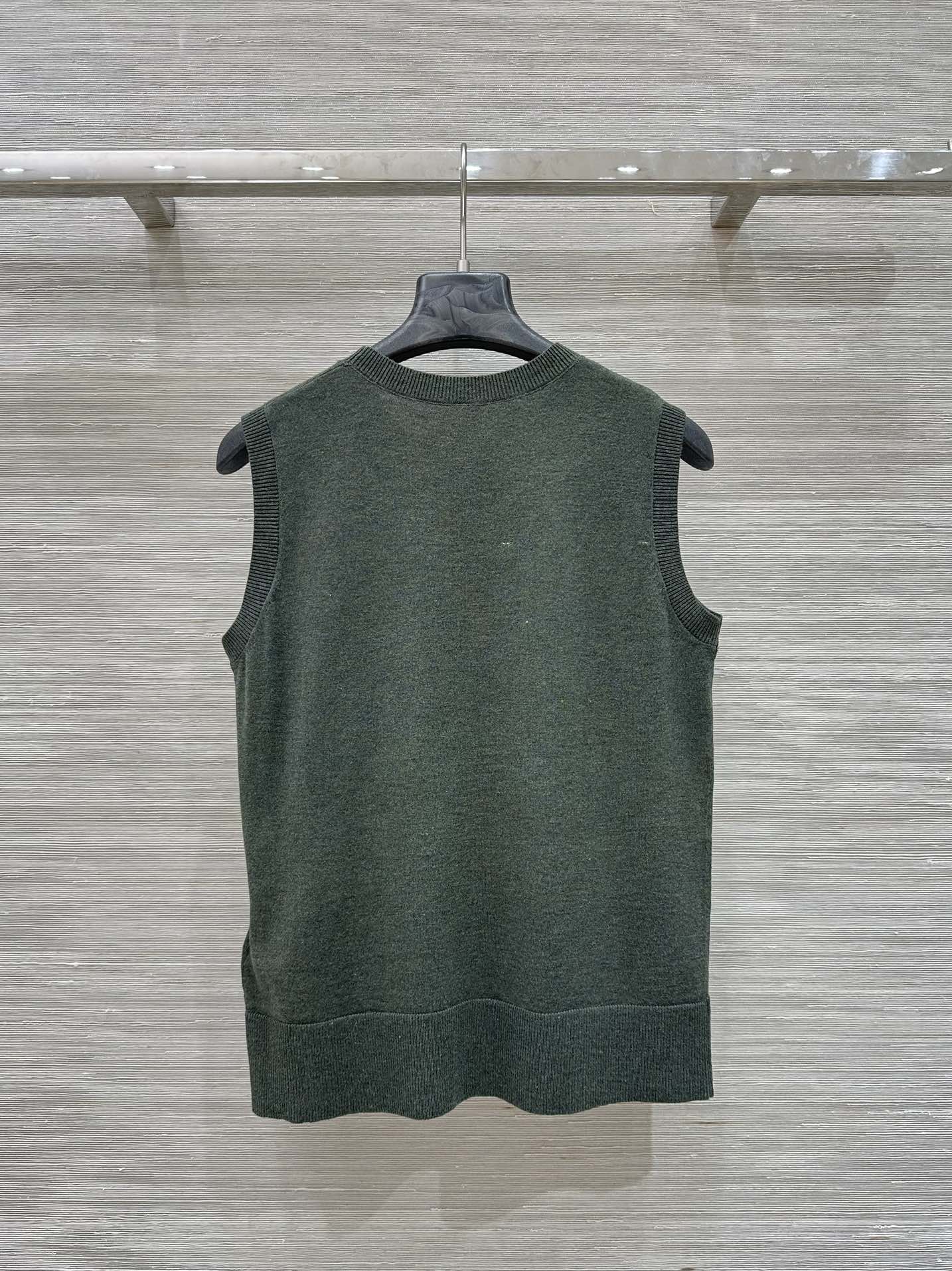 Gucci 2025 Logo Embroidered Knitted Vest Top Green Wool