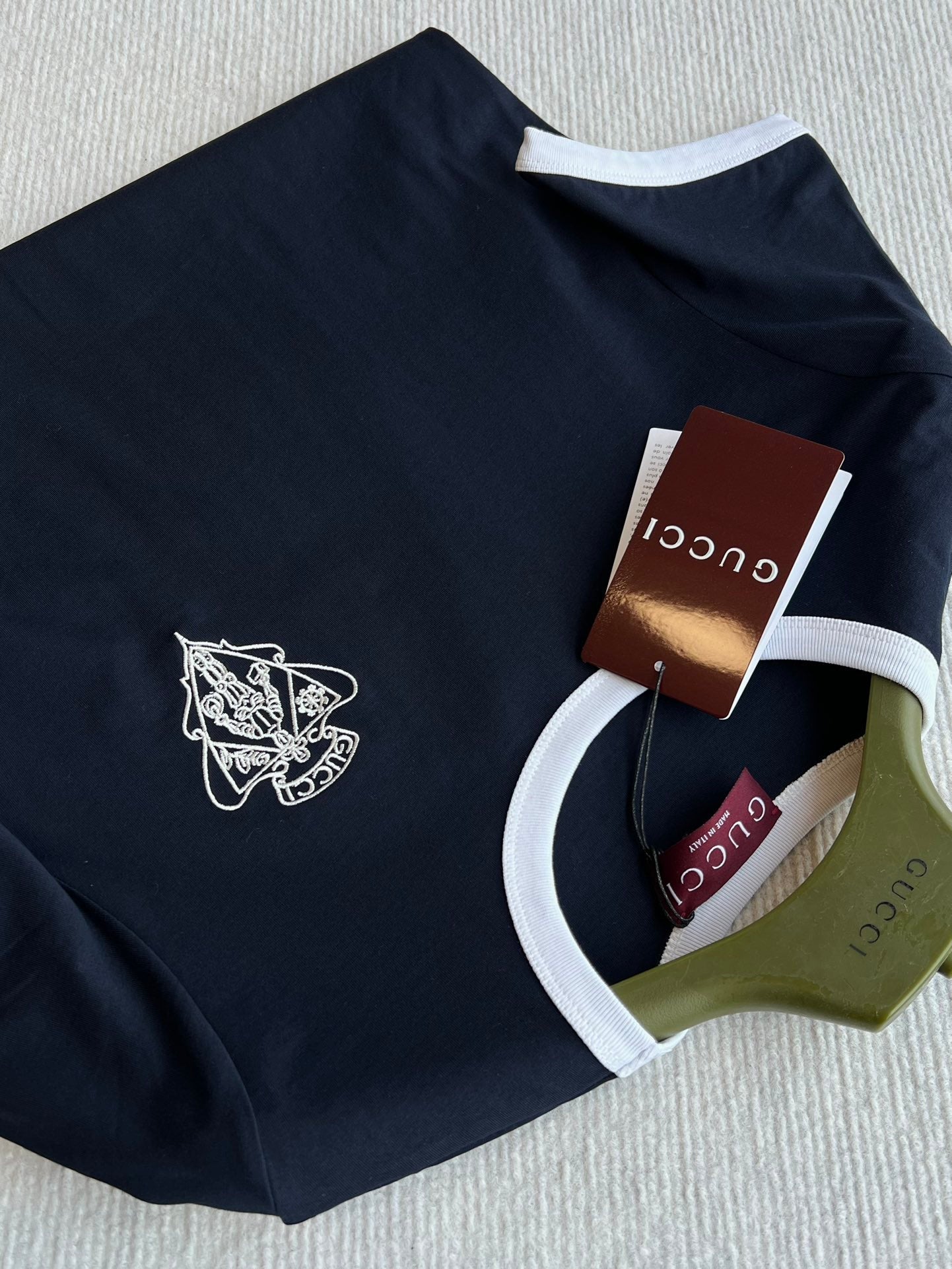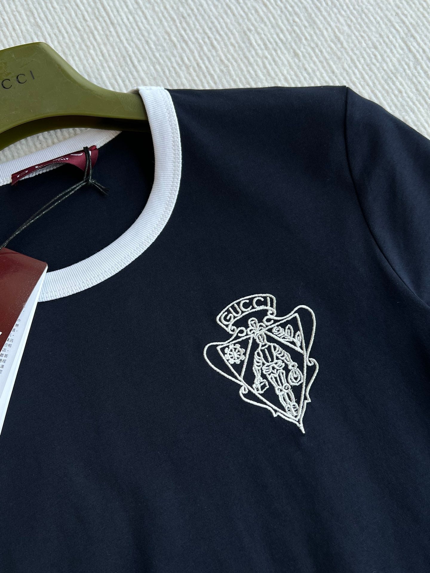 Gucci 25 Threaded Round Neck Short Sleeves T-shirt Blue Cotton