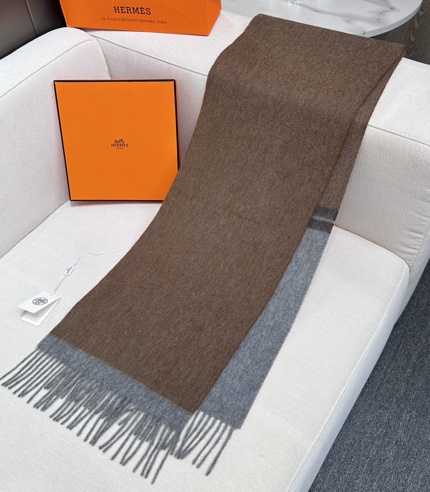Scarf 180 CM Brown Grey Cashmere