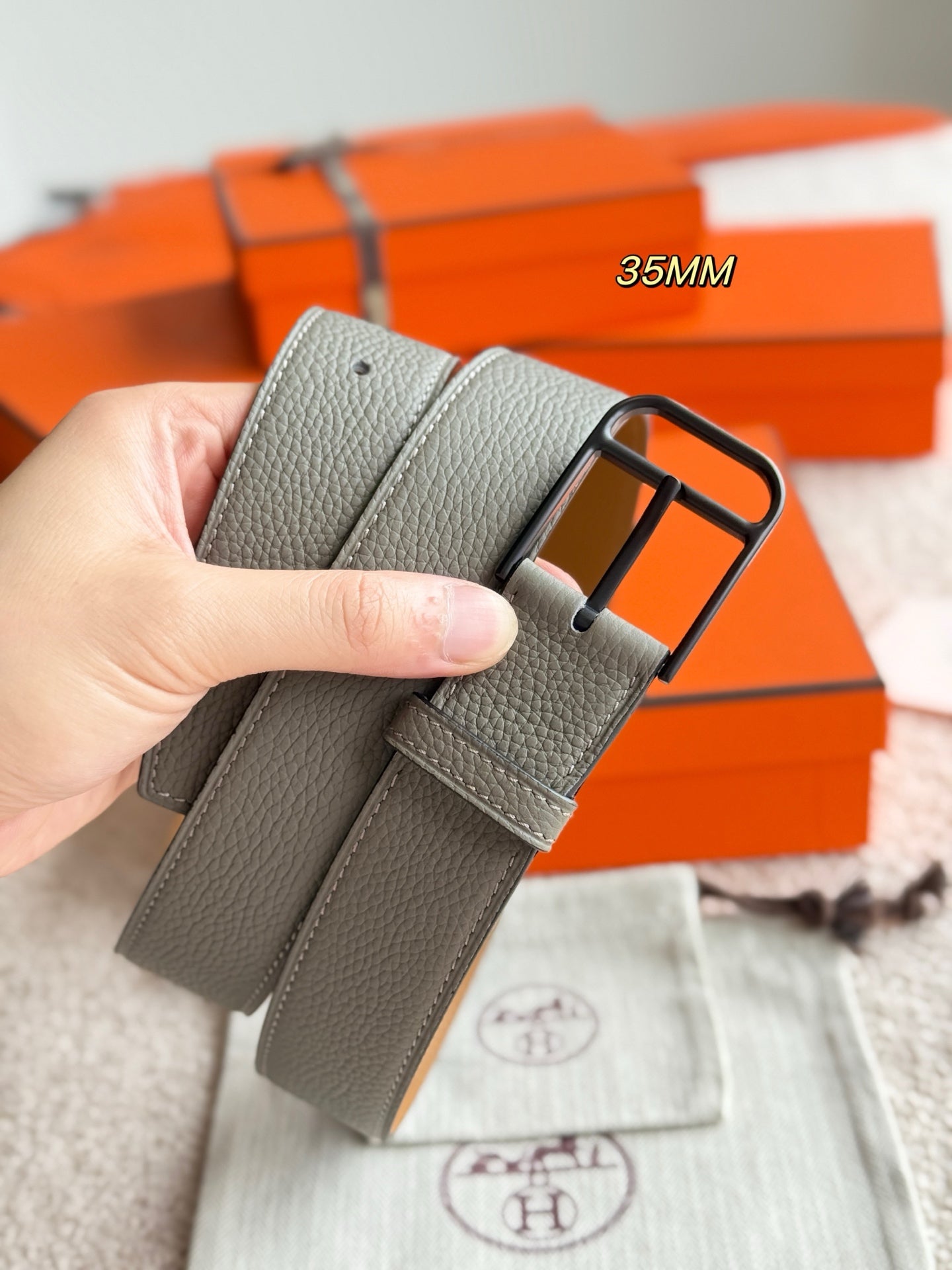 HM 35mm Romain Belt Meyer gray Leather 188394