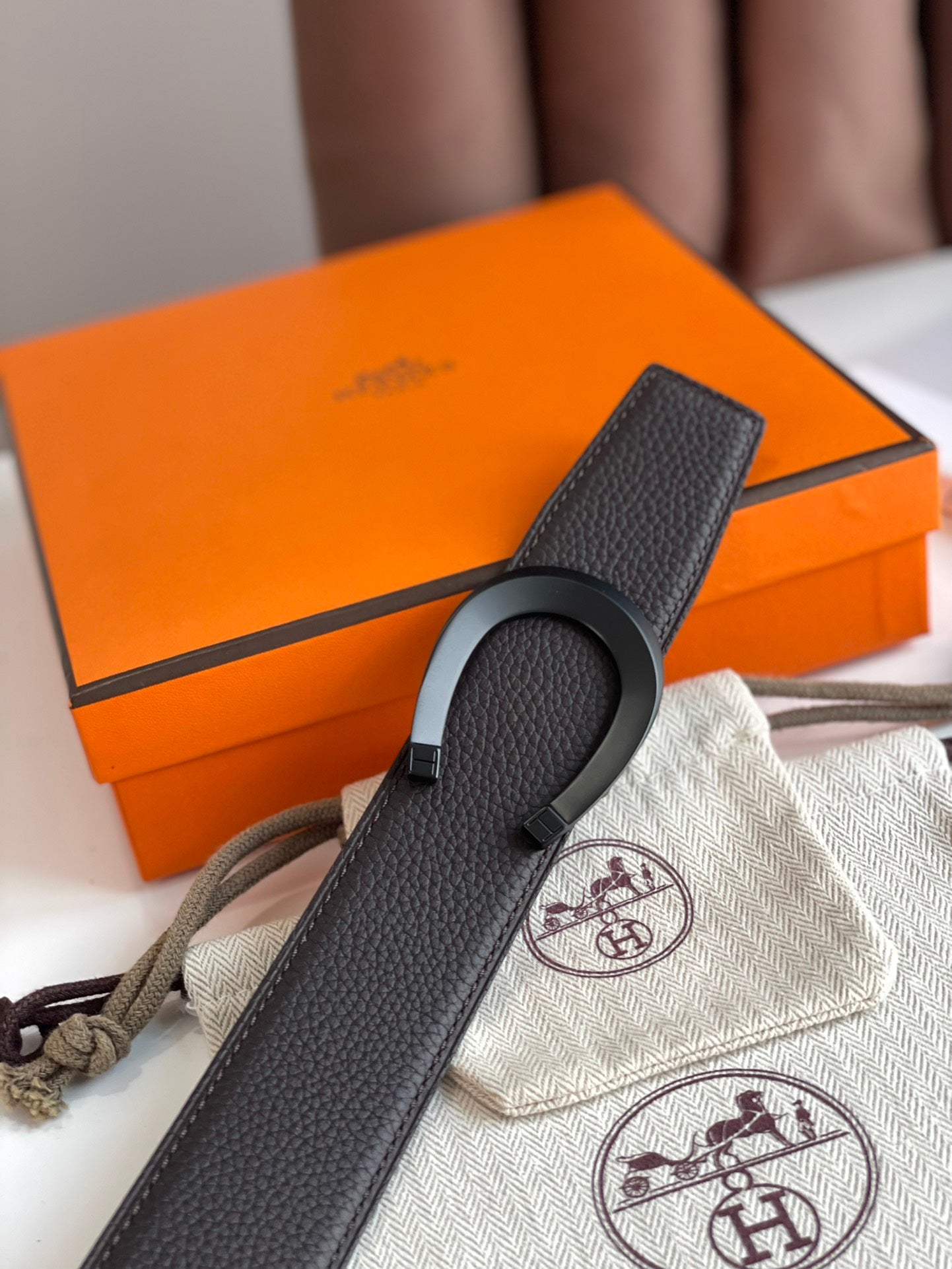 HM LUCK BELT BUCKLE & REVERSIBLE CHOCOLATE BROWN AND BLACK LEATHER STRAP 38MM