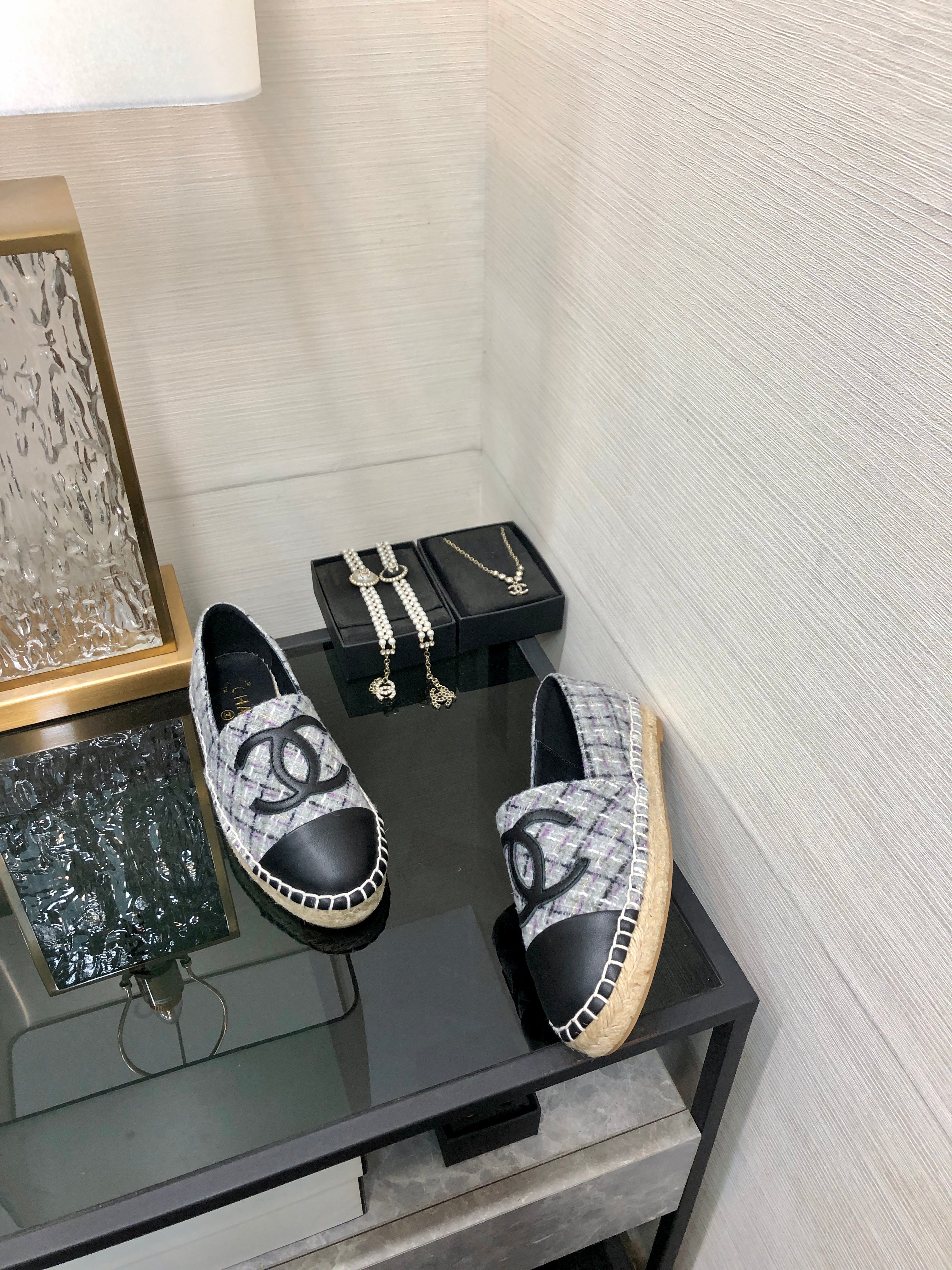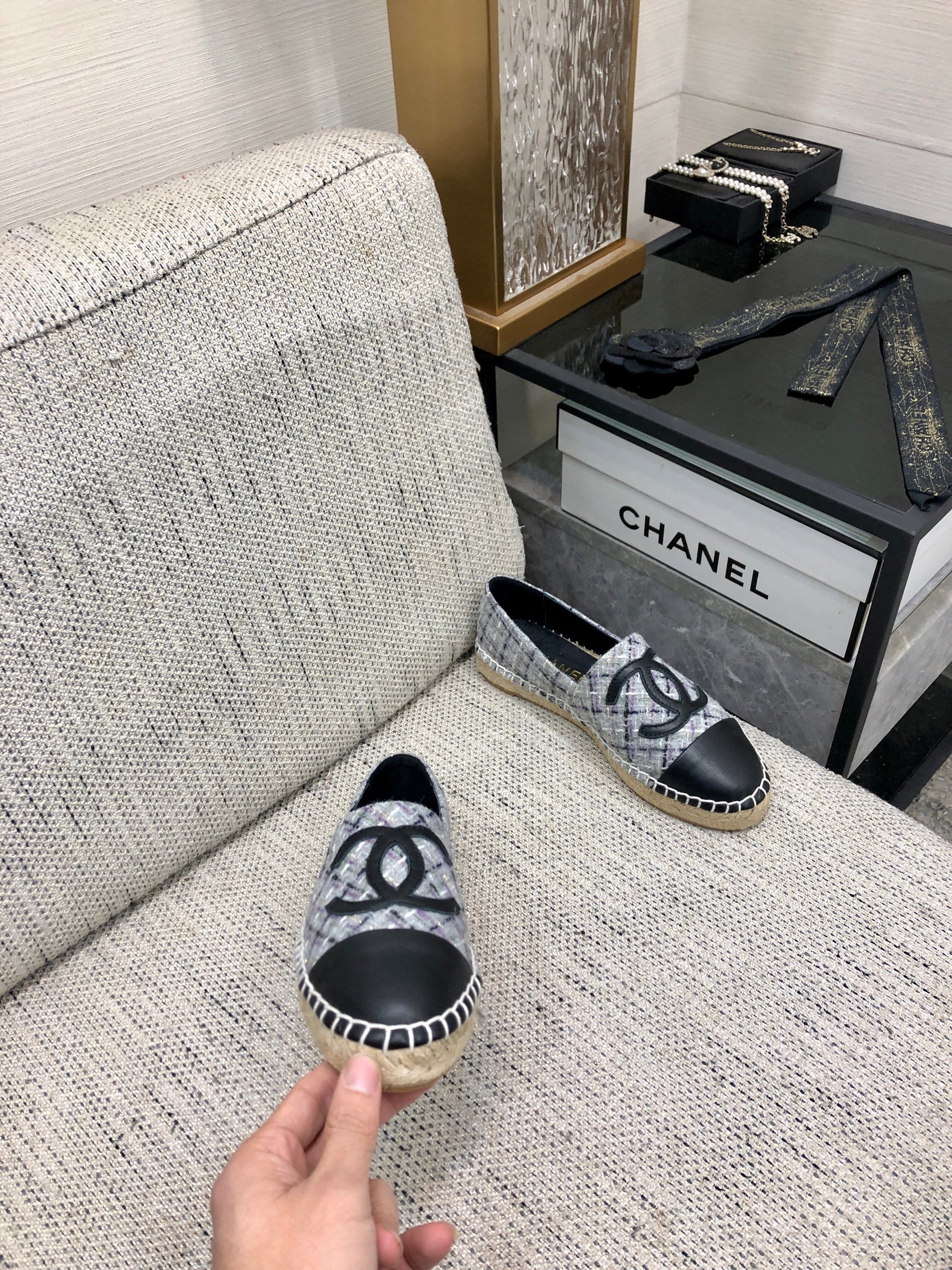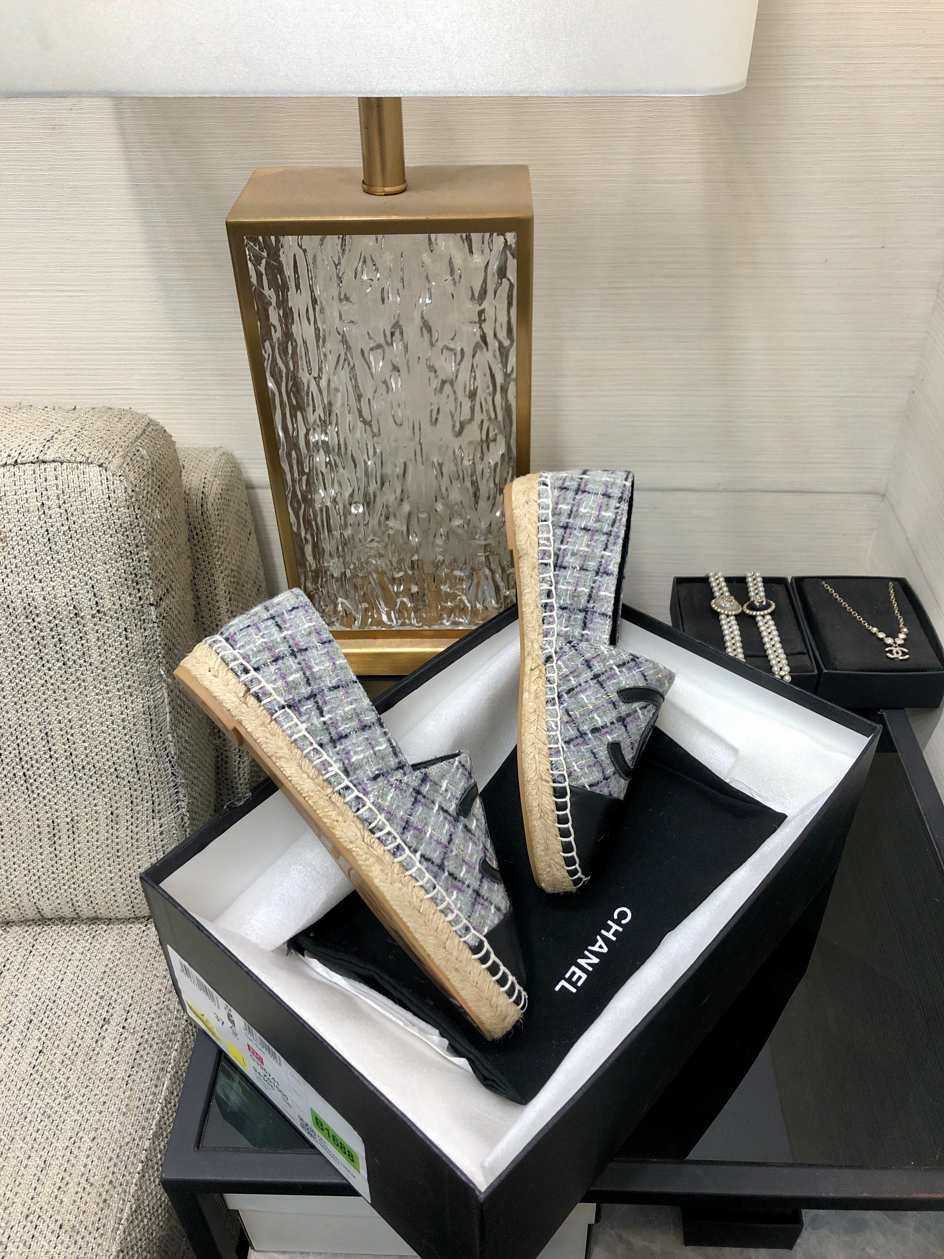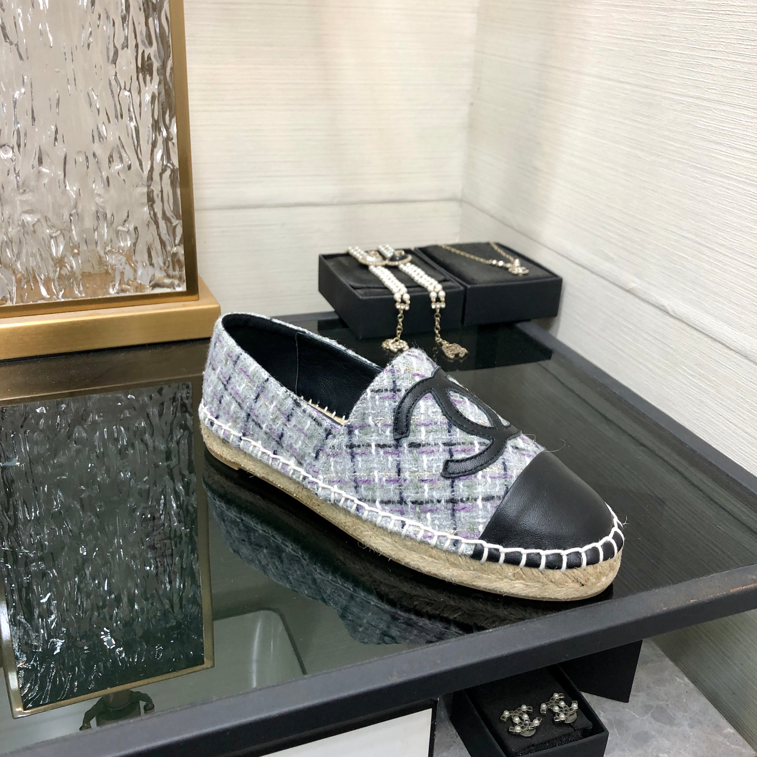 ESPADRILLE COLORFUL TWEED FABRIC AND BLACK CALFSKIN FLATS