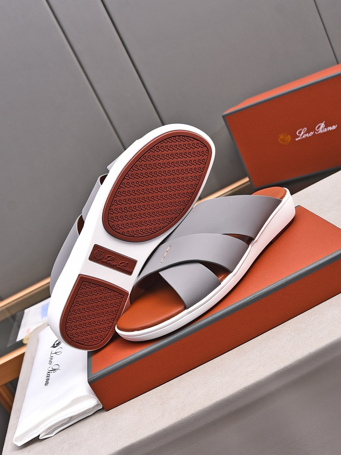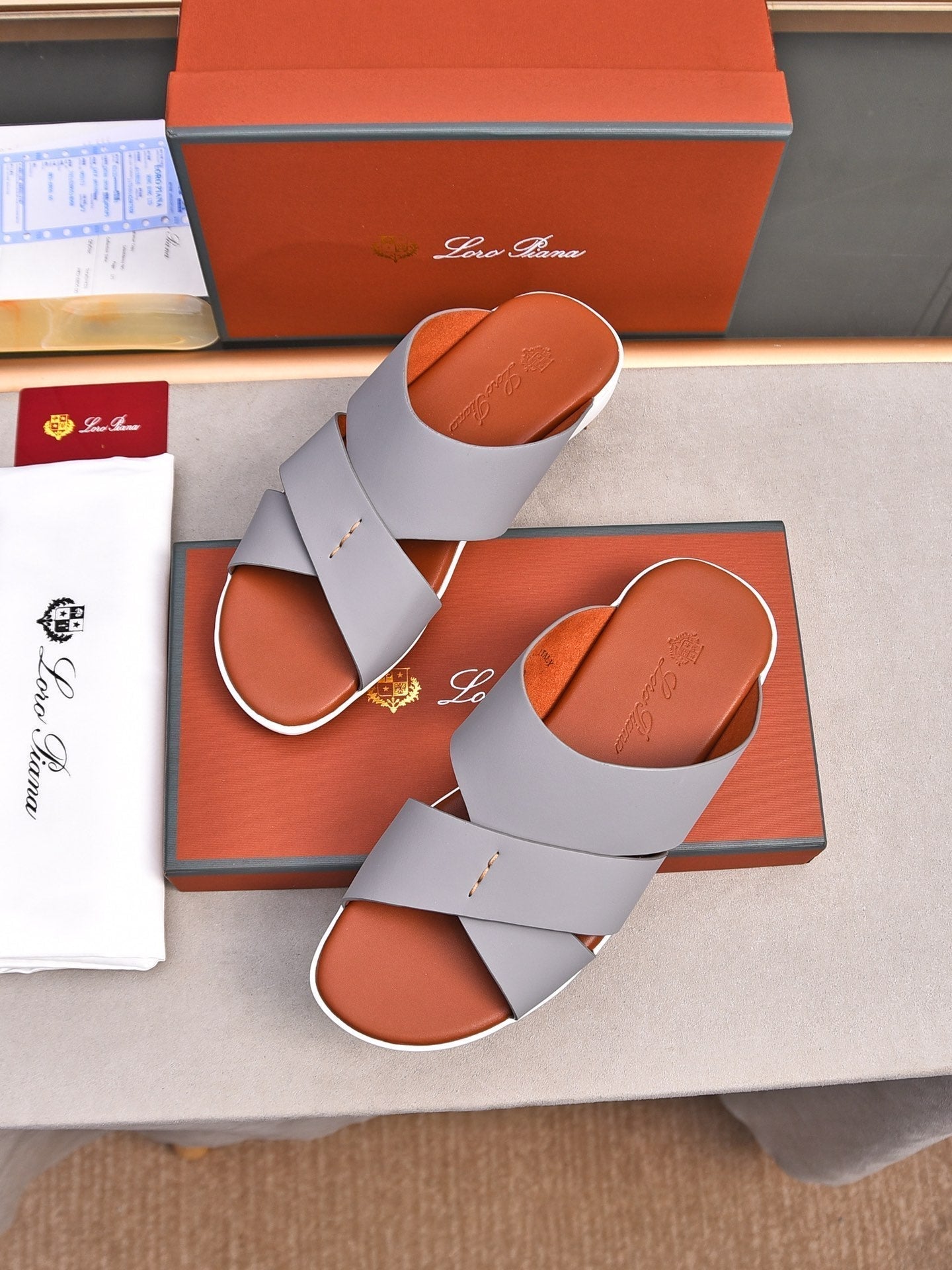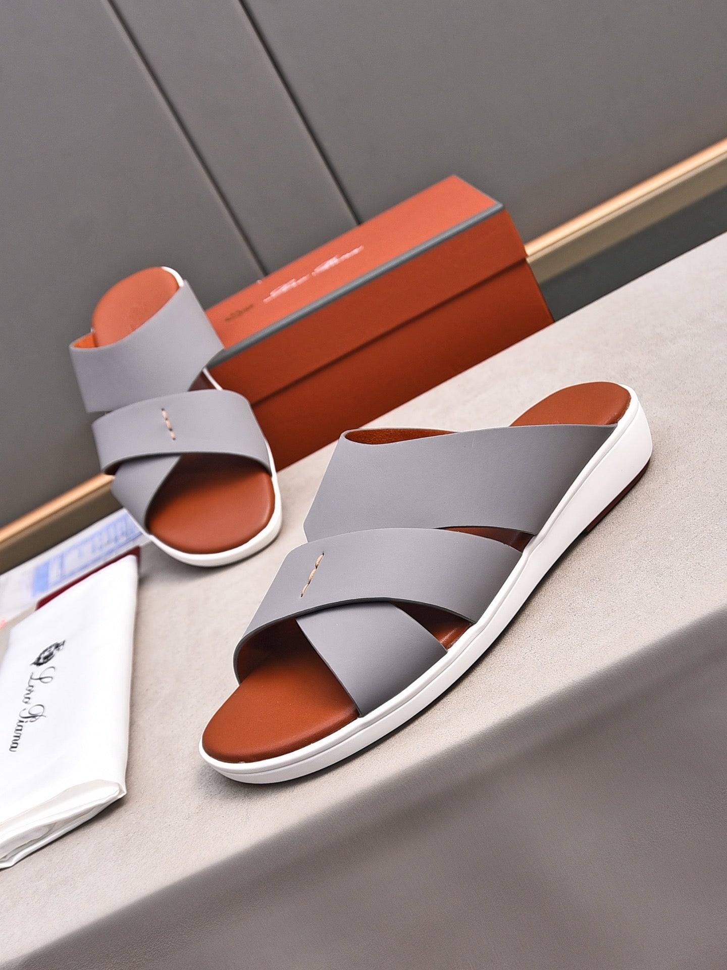LP INTERWOVEN STRAPS SLIPPERS LIGHT GRAY CALFSKIN