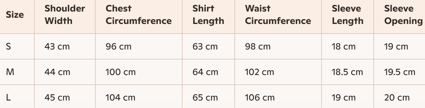 - Size: S, M, L