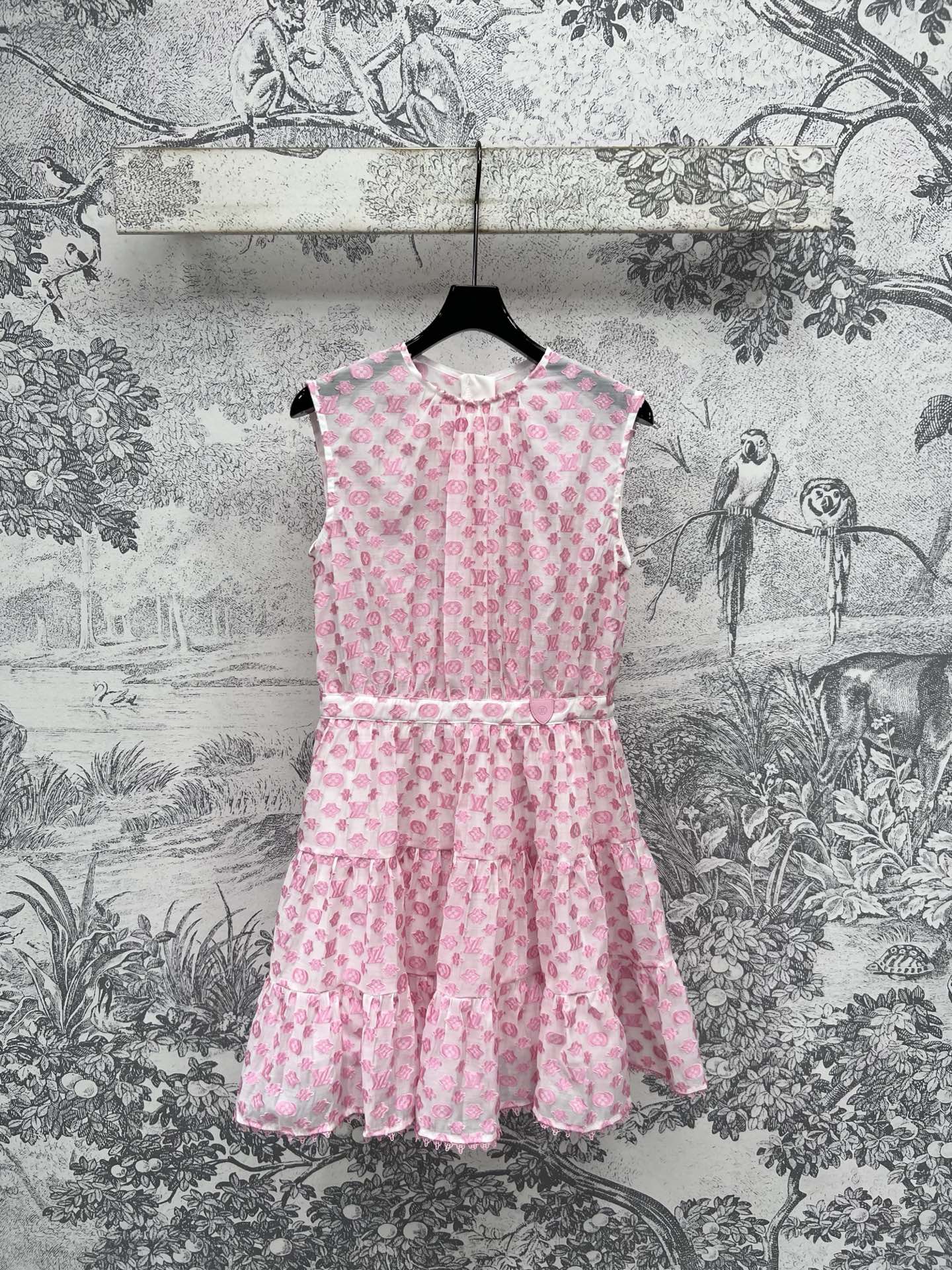 LV 25 Coin Letter Jacquard Pattern Decoration Dress Black Pink Poliester