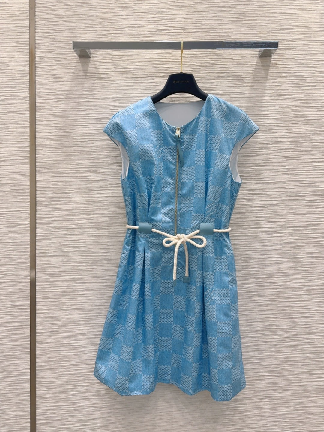 LV 25 Pleated Trendy Square Vest Dress White Blue Poliester