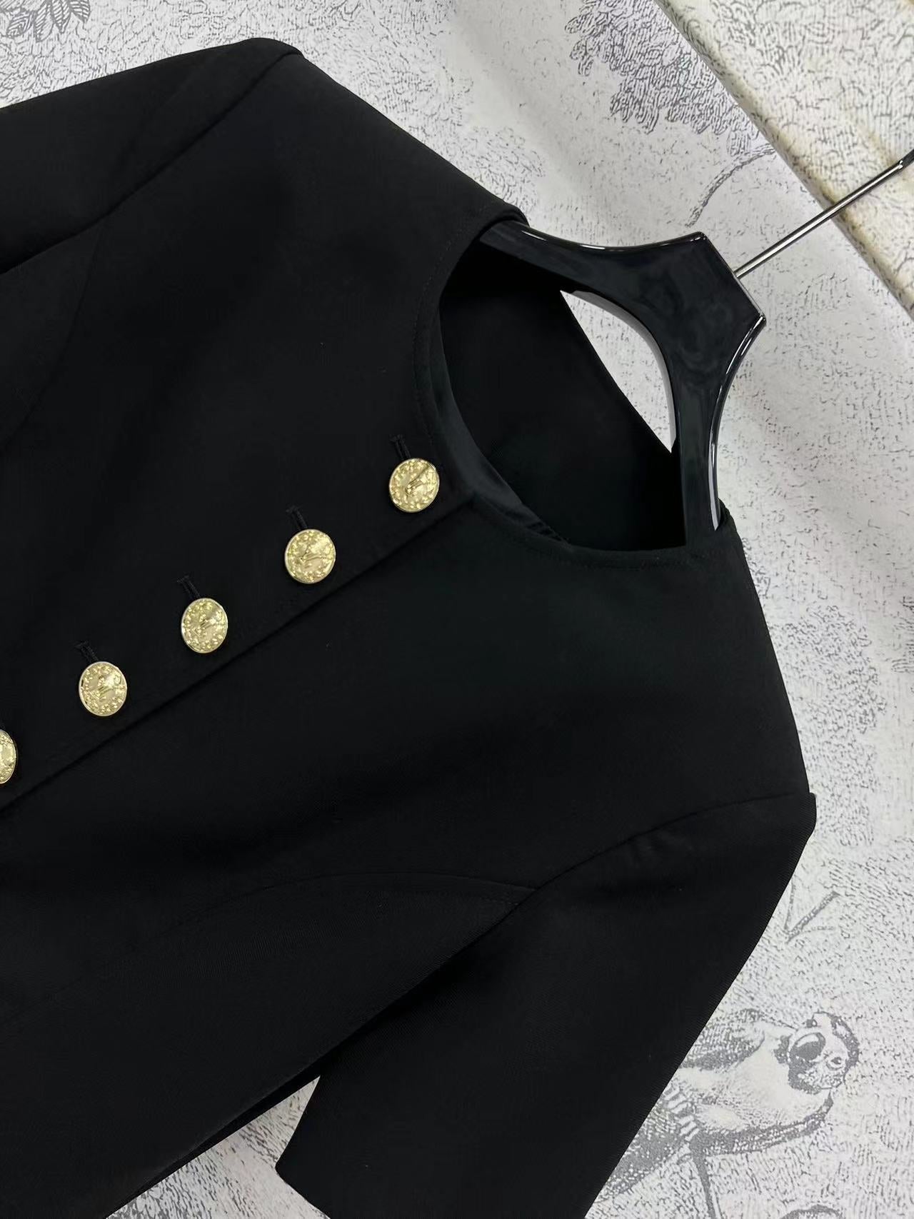 LV 25 Round-Neck Logo Metal Buttoned Dress Black Poliester