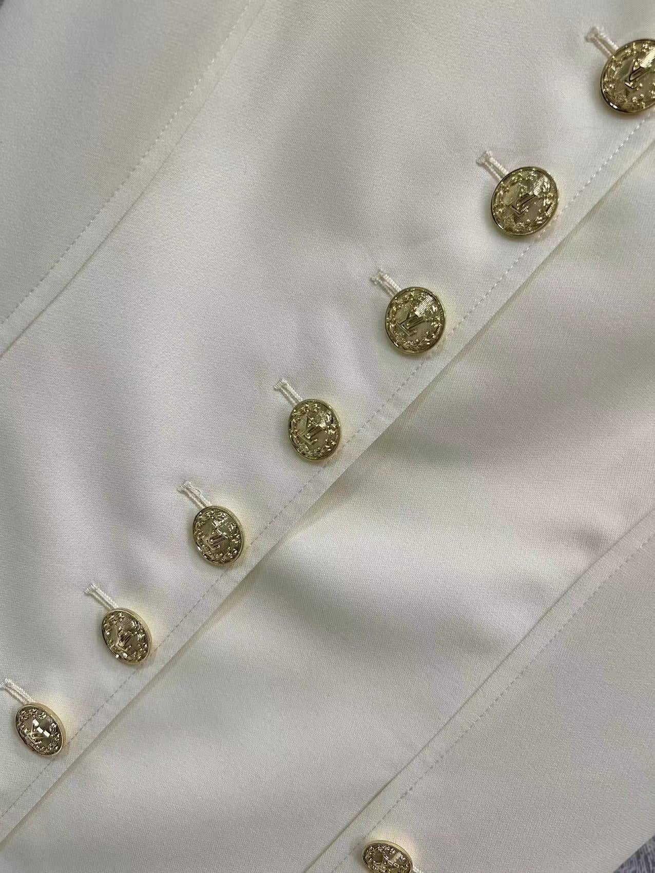 LV 25 Round-Neck Logo Metal Buttoned Dress White Poliester