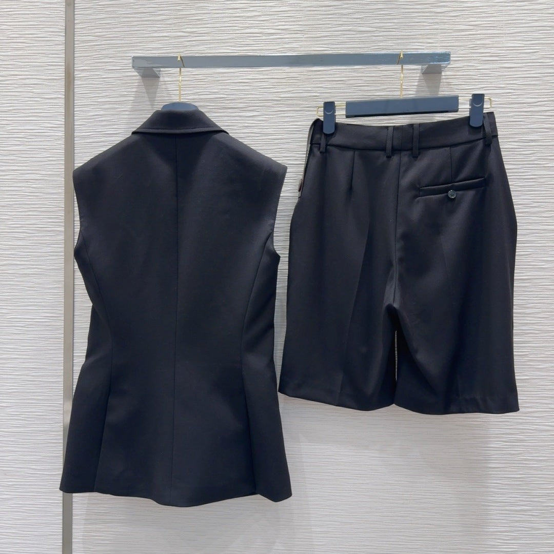 LV 25 Simple Elegant Vest Set Black Beige Poliester Wool