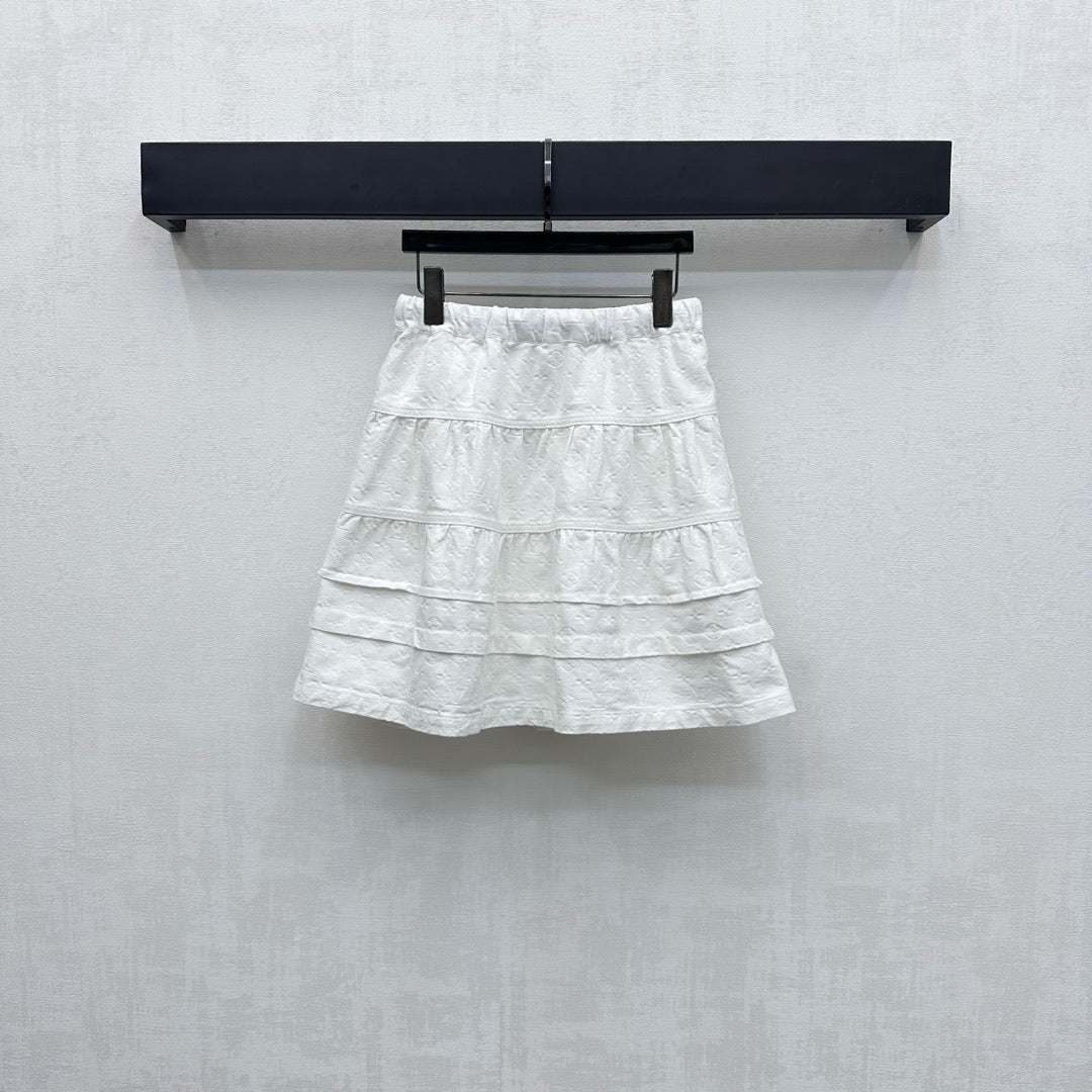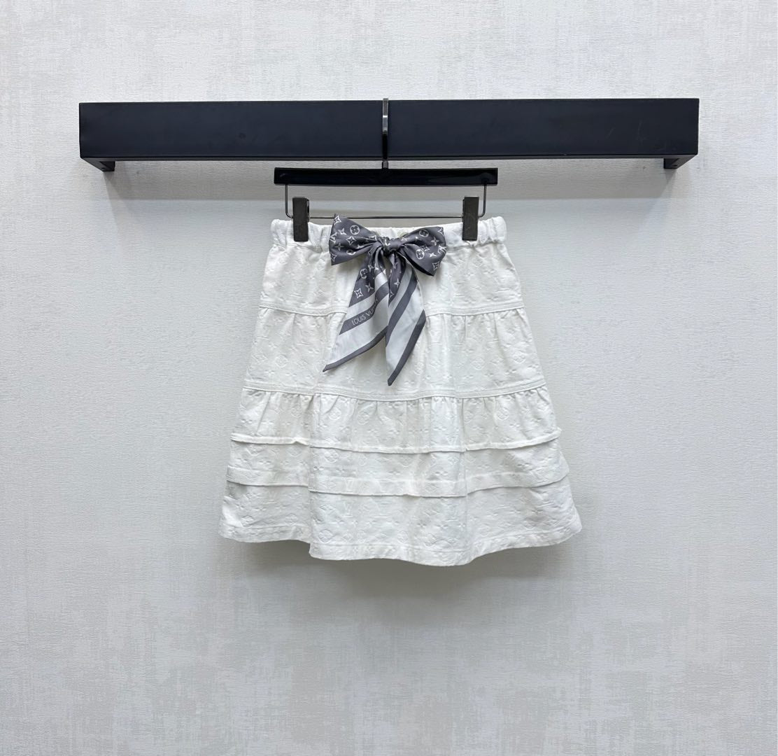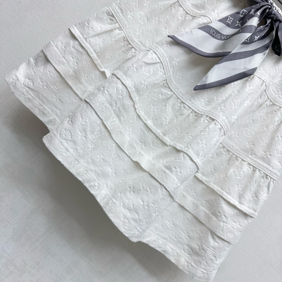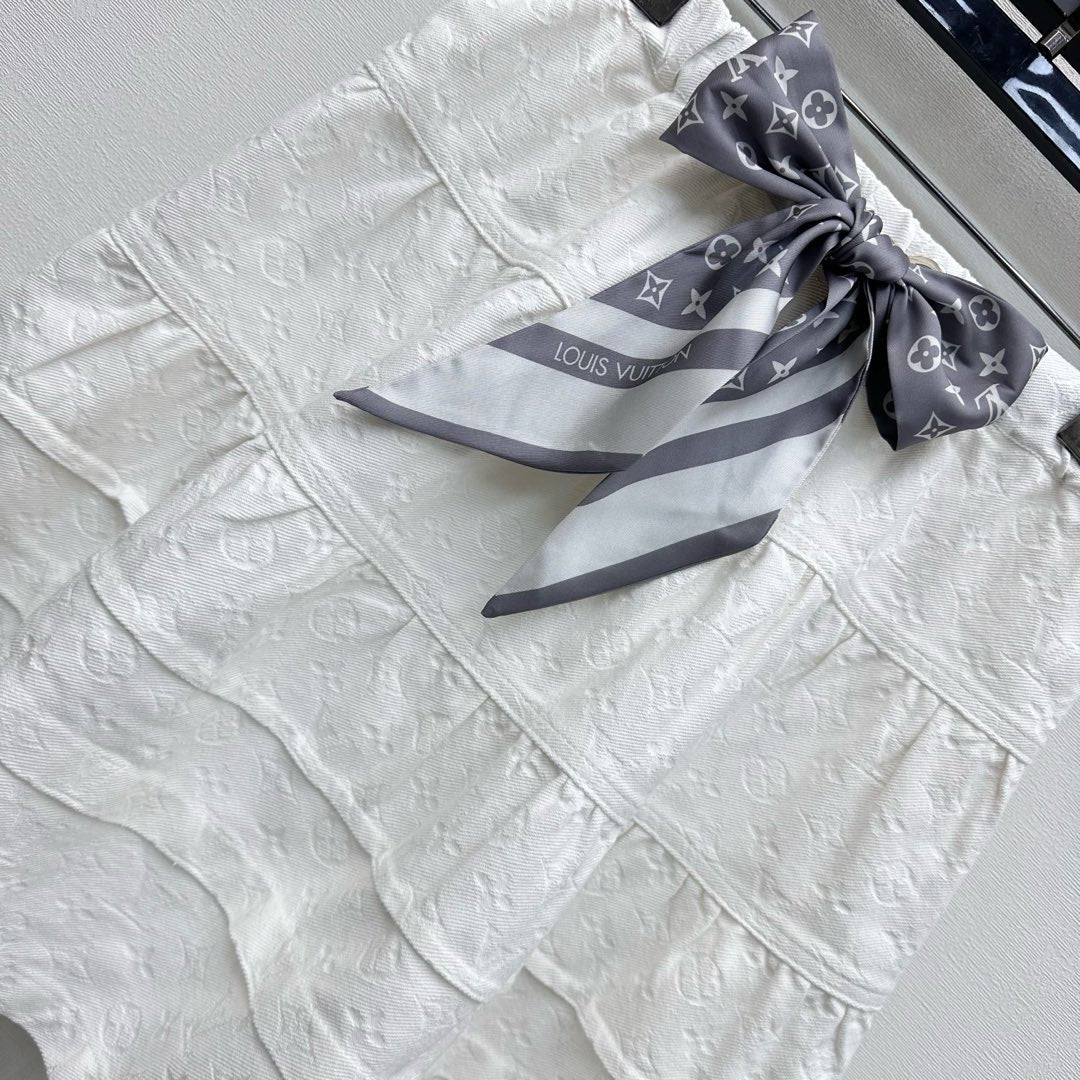 LV25 Embossed Denim Scarf Skirt White Grey Cotton 291767