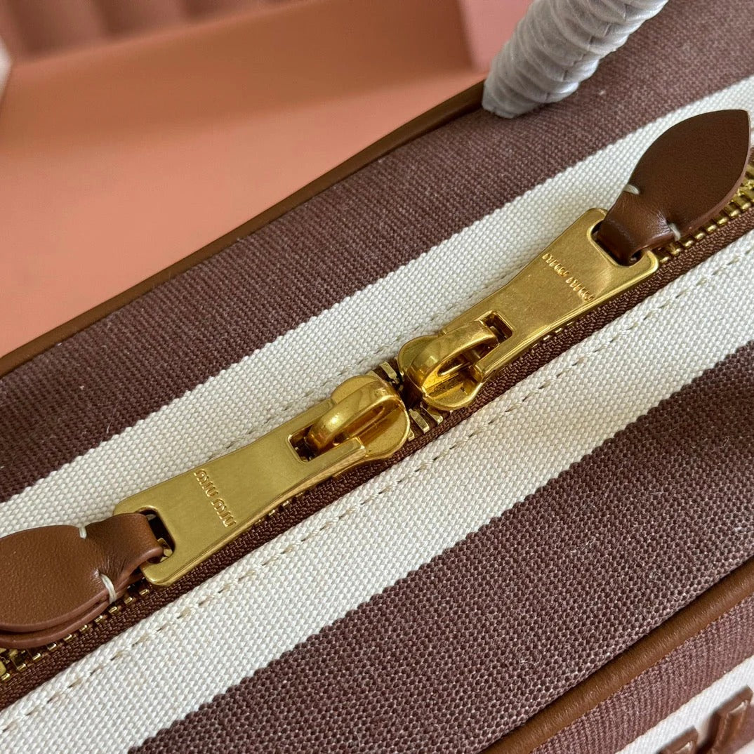 BEAU BAG 34 DENIM BEAU WITH BROWN STRIPES IN CANVAS AND CALFSKIN