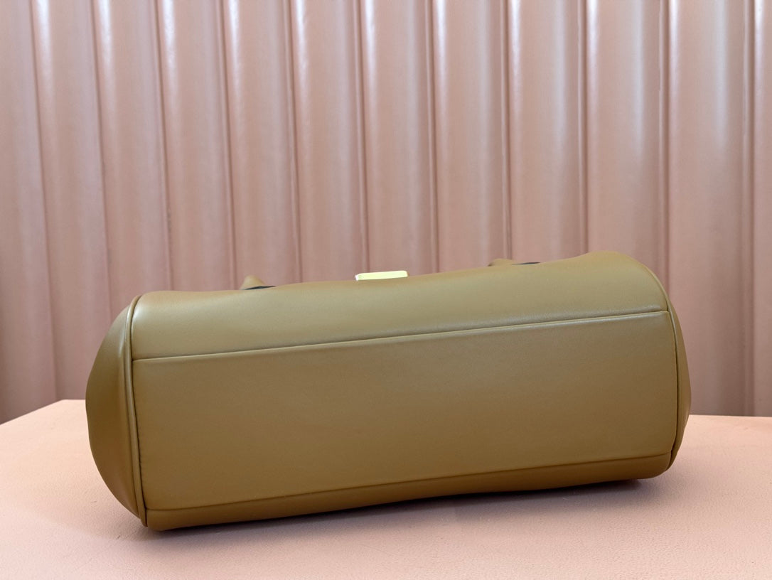 BEAU TOP HANDLE BAG 28 IN CHOCOLATE BROWN GLOSSY CALFSKIN GOLD HARDWARE