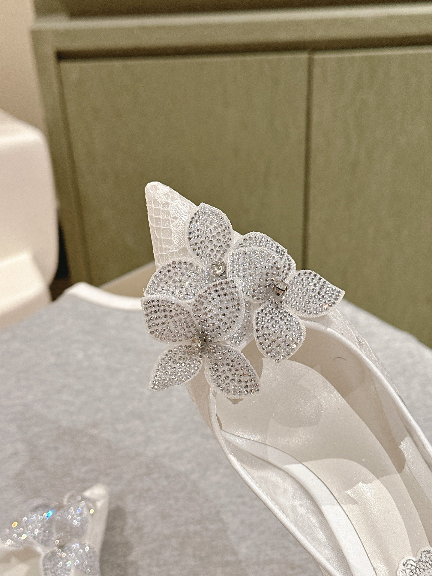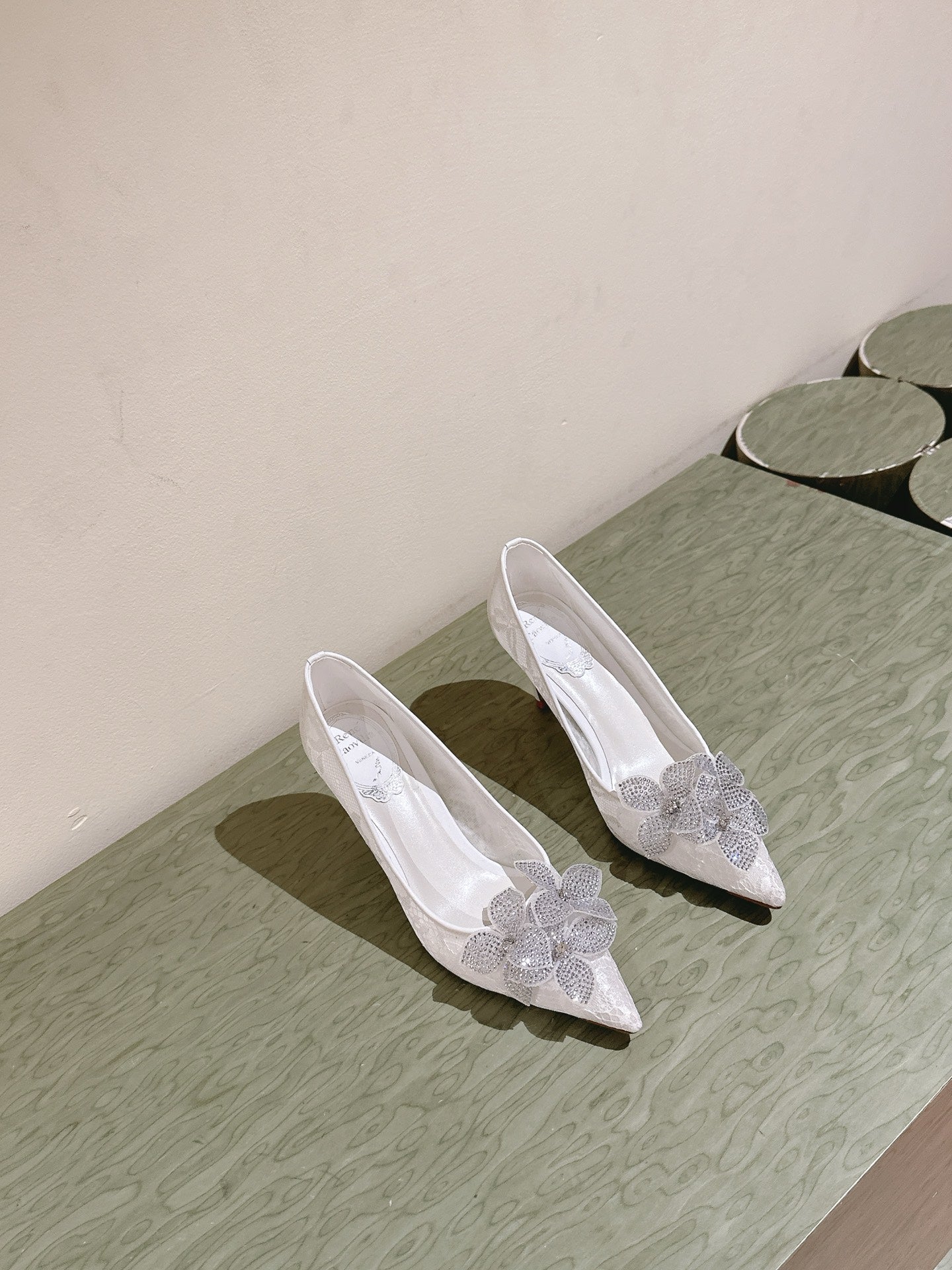 RC 25C Flower High Heel 7.5cm White Silk Rhinestones 268083