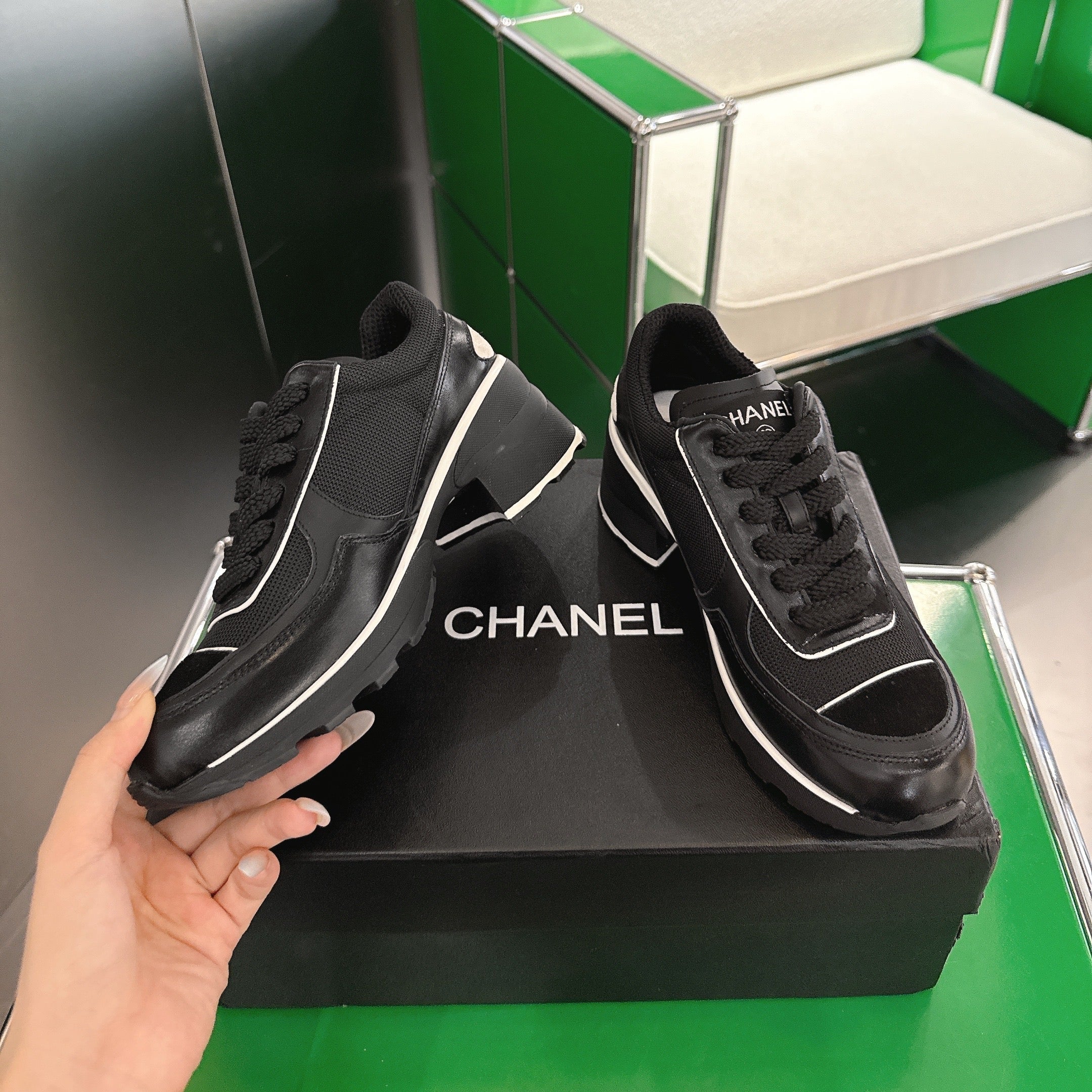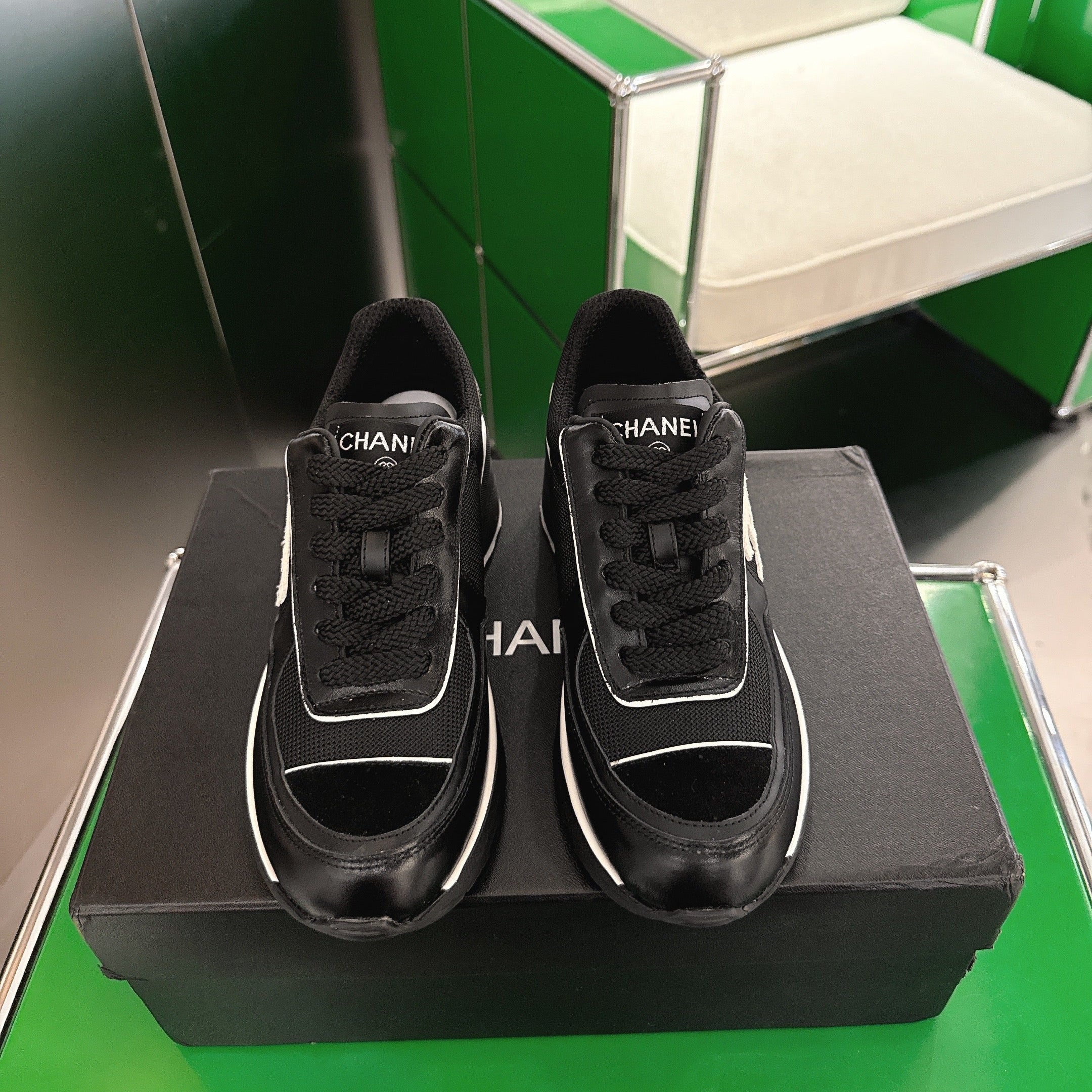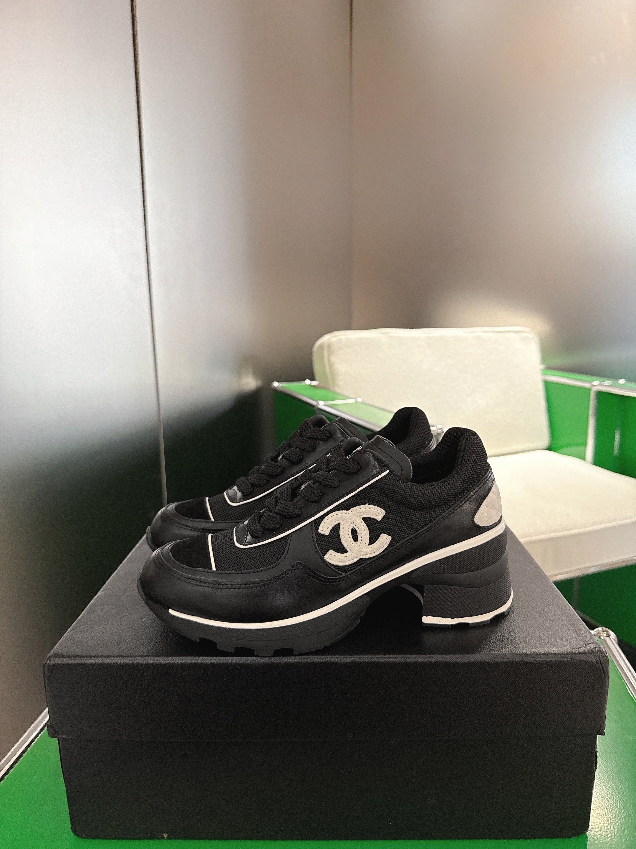 Chanel Low-Top Sneakers 30mm Black Calfskin Leather and Mesh 507543