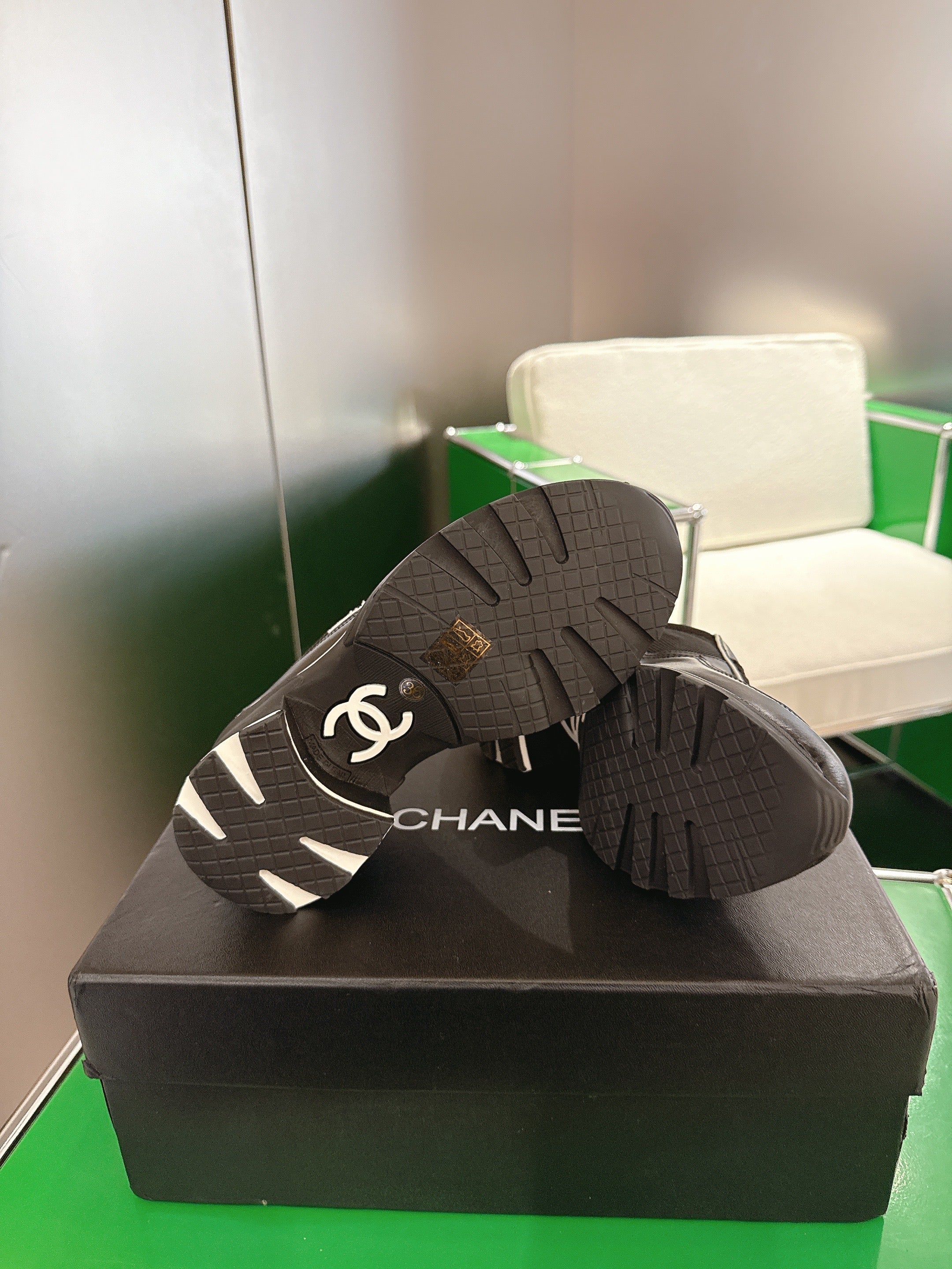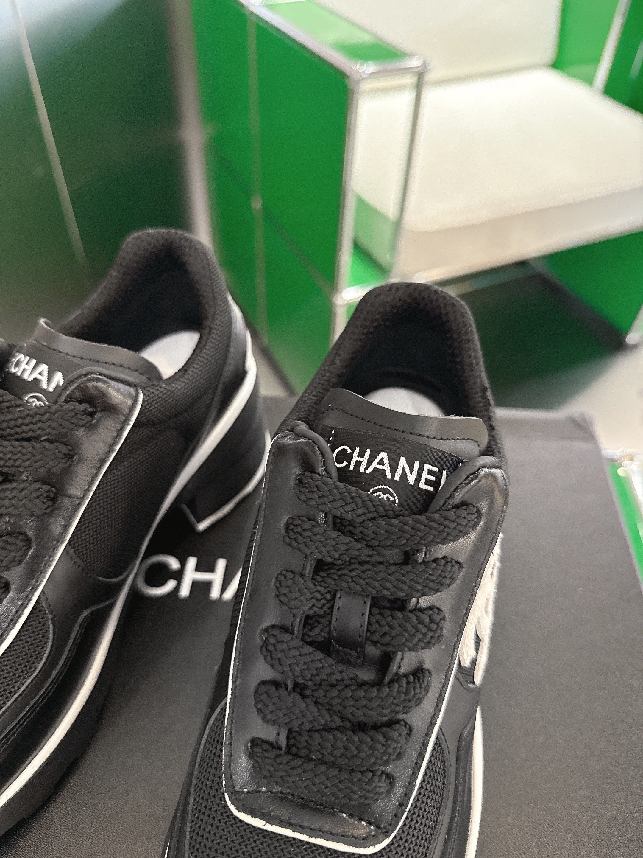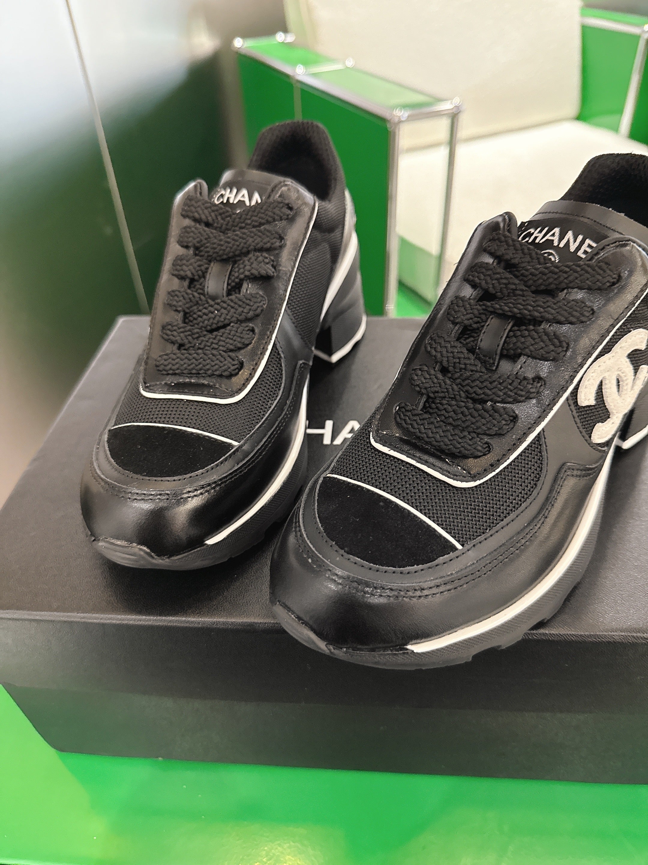 Chanel Low-Top Sneakers 30mm Black Calfskin Leather and Mesh 507543