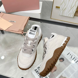 Miu Gymnasium Sneakers Brown White Technical Fabric & Suede 445725