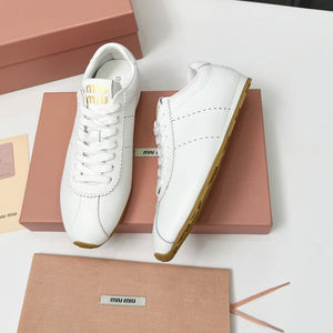 Miu Low-top Pointed Toe Sneakers White Cowhide Suede 445541