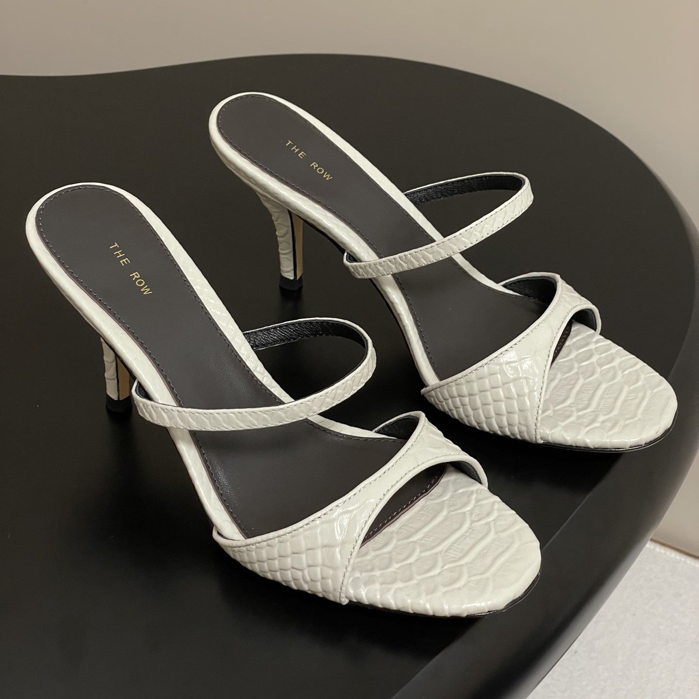 The Row 25S Strap High Heel Mule Sandals 85mm White Snake Pattern Cowhide 286204