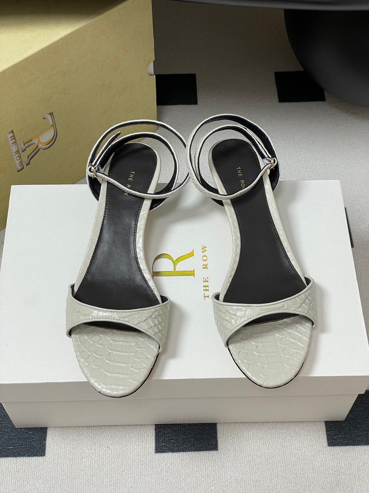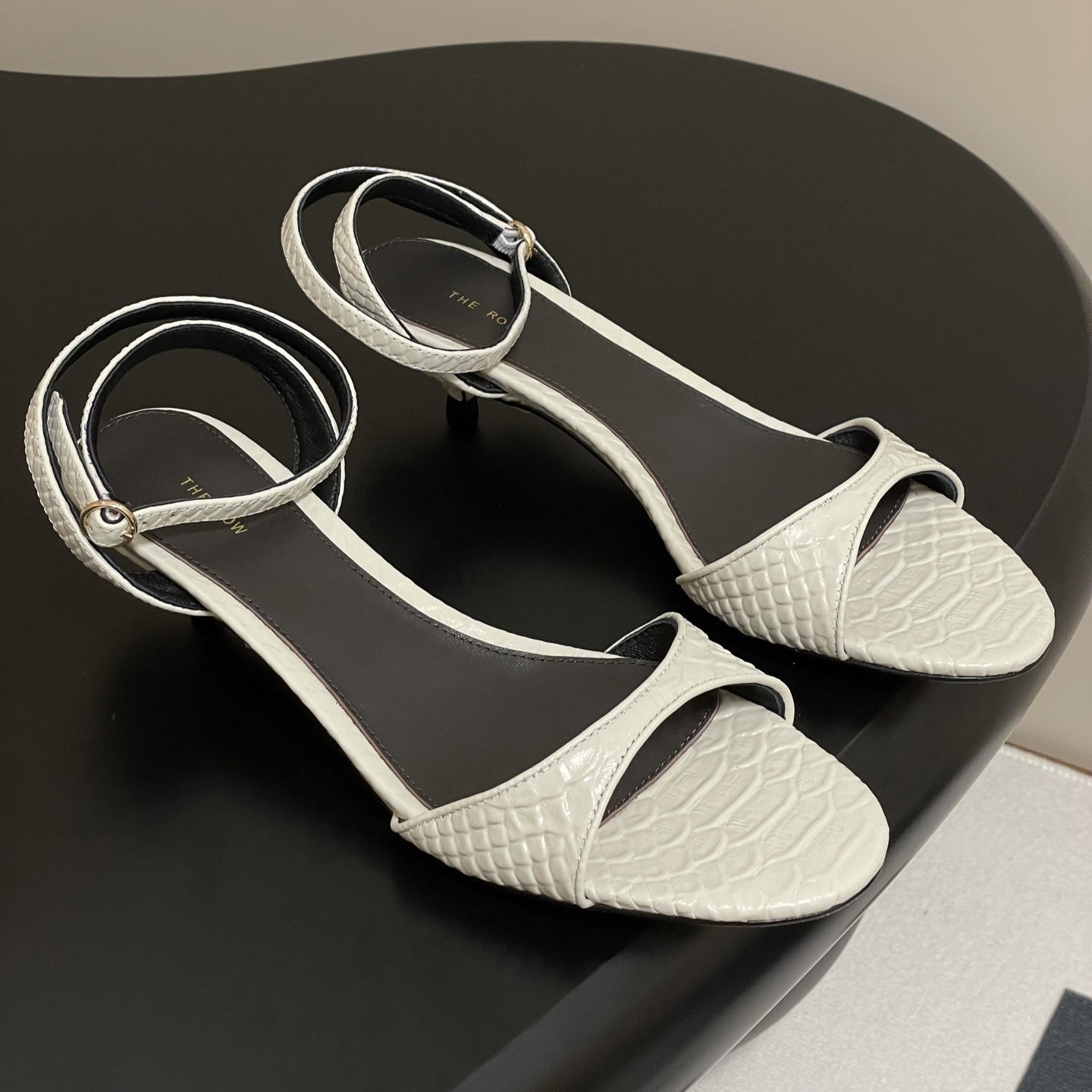 The Row 25S Strap High Heel Sandals 35mm White Snake Pattern Cowhide 286196