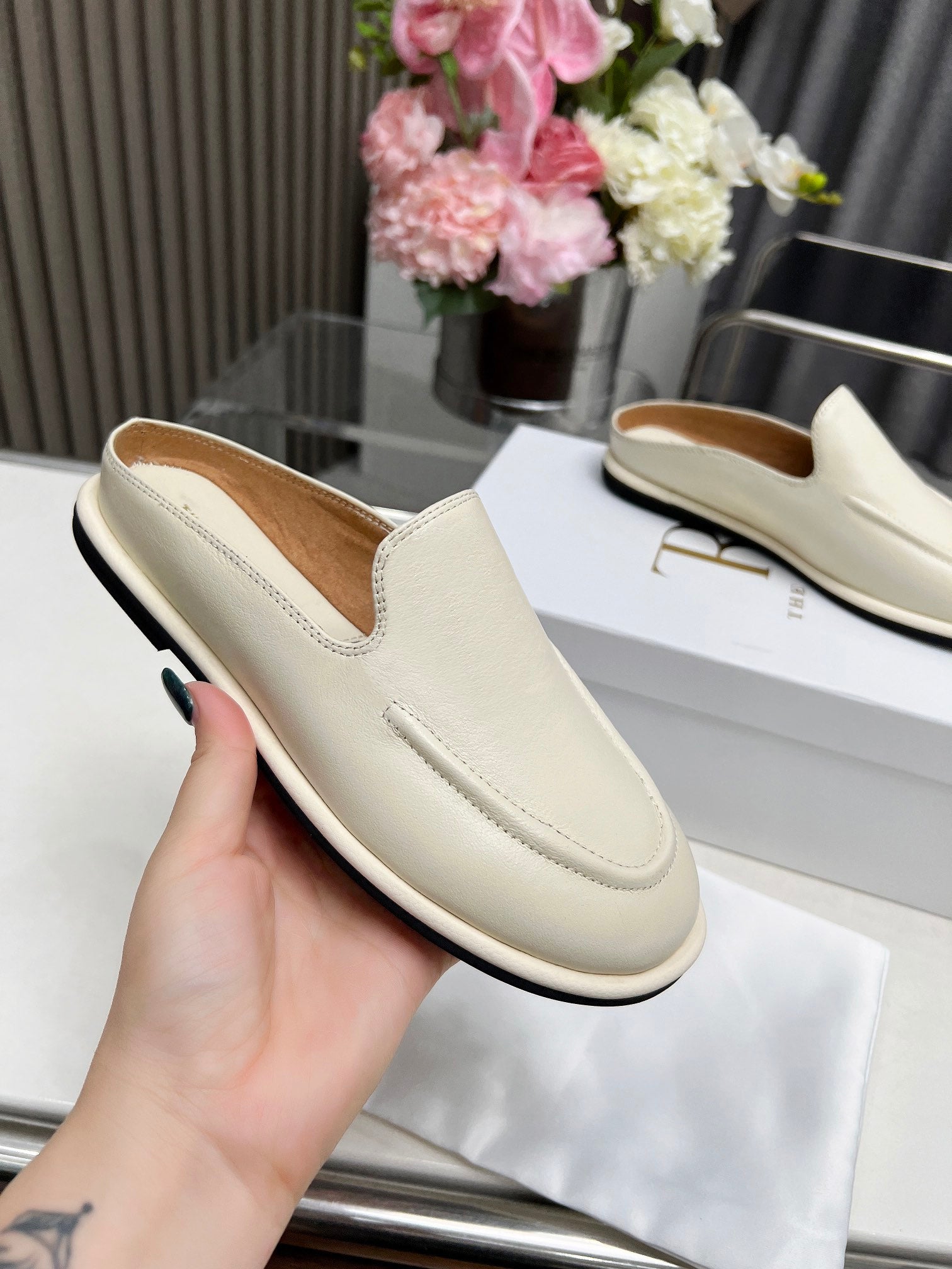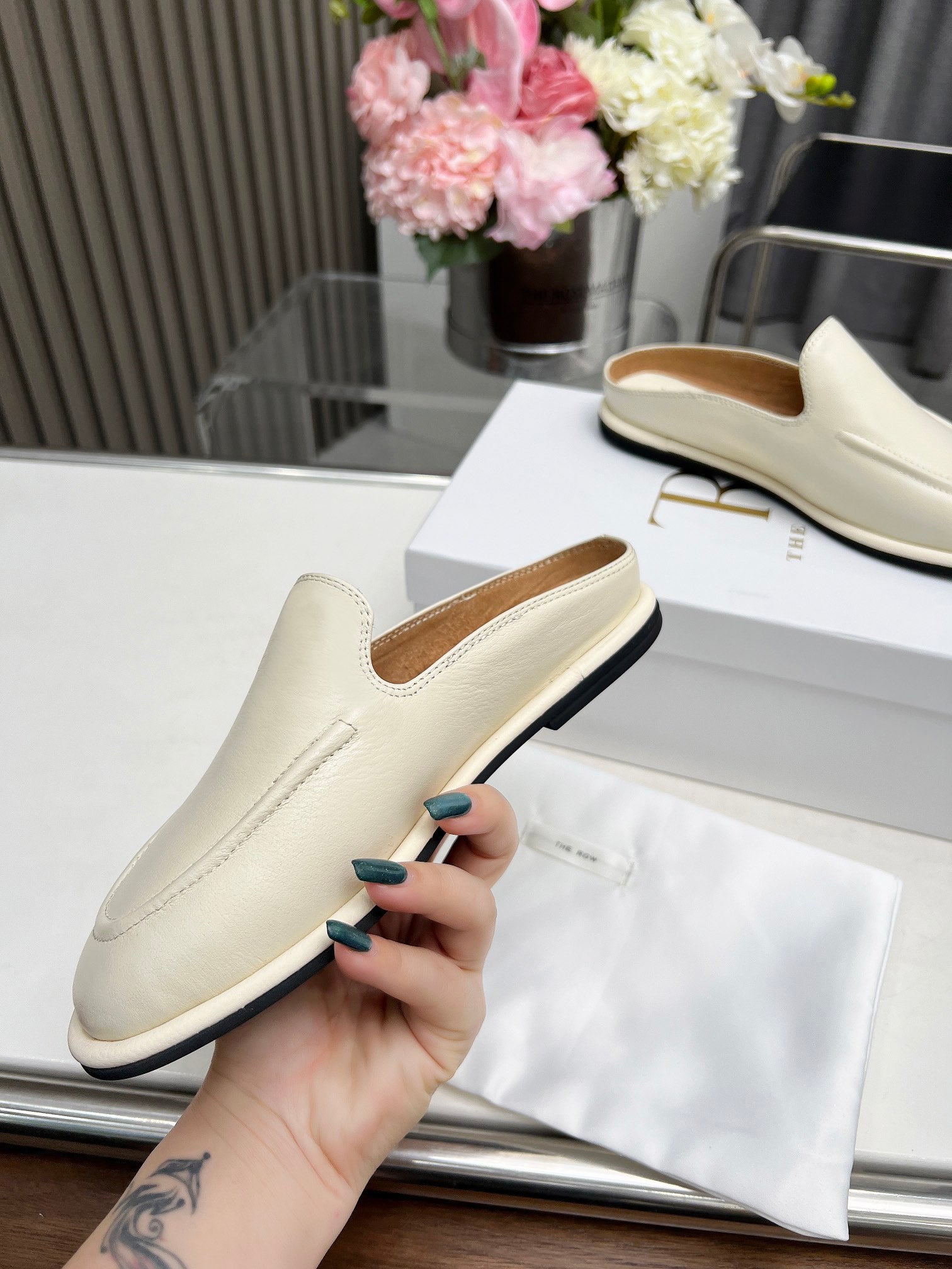 The Row Classic Loafers In Cream Calfskin 455032