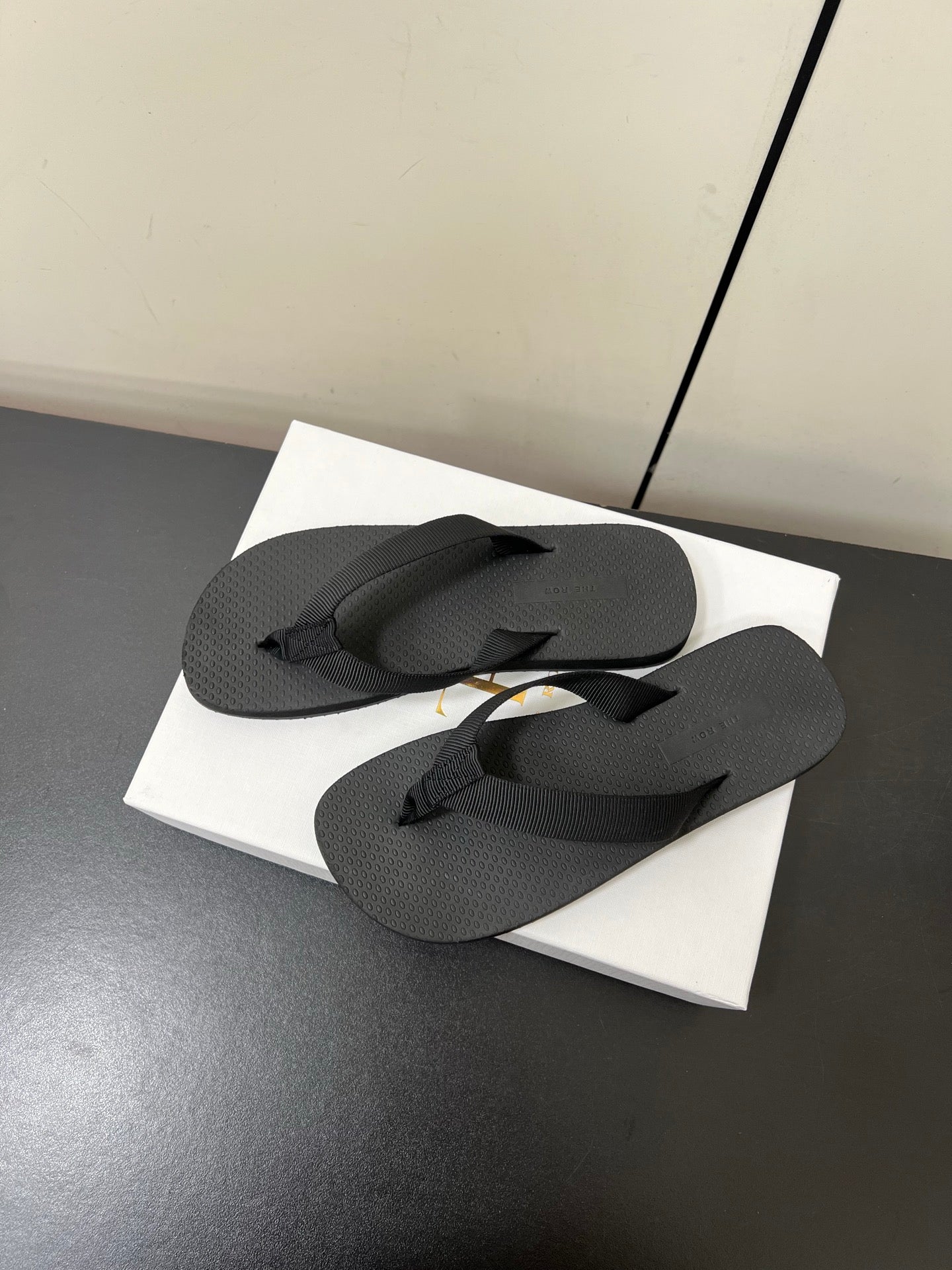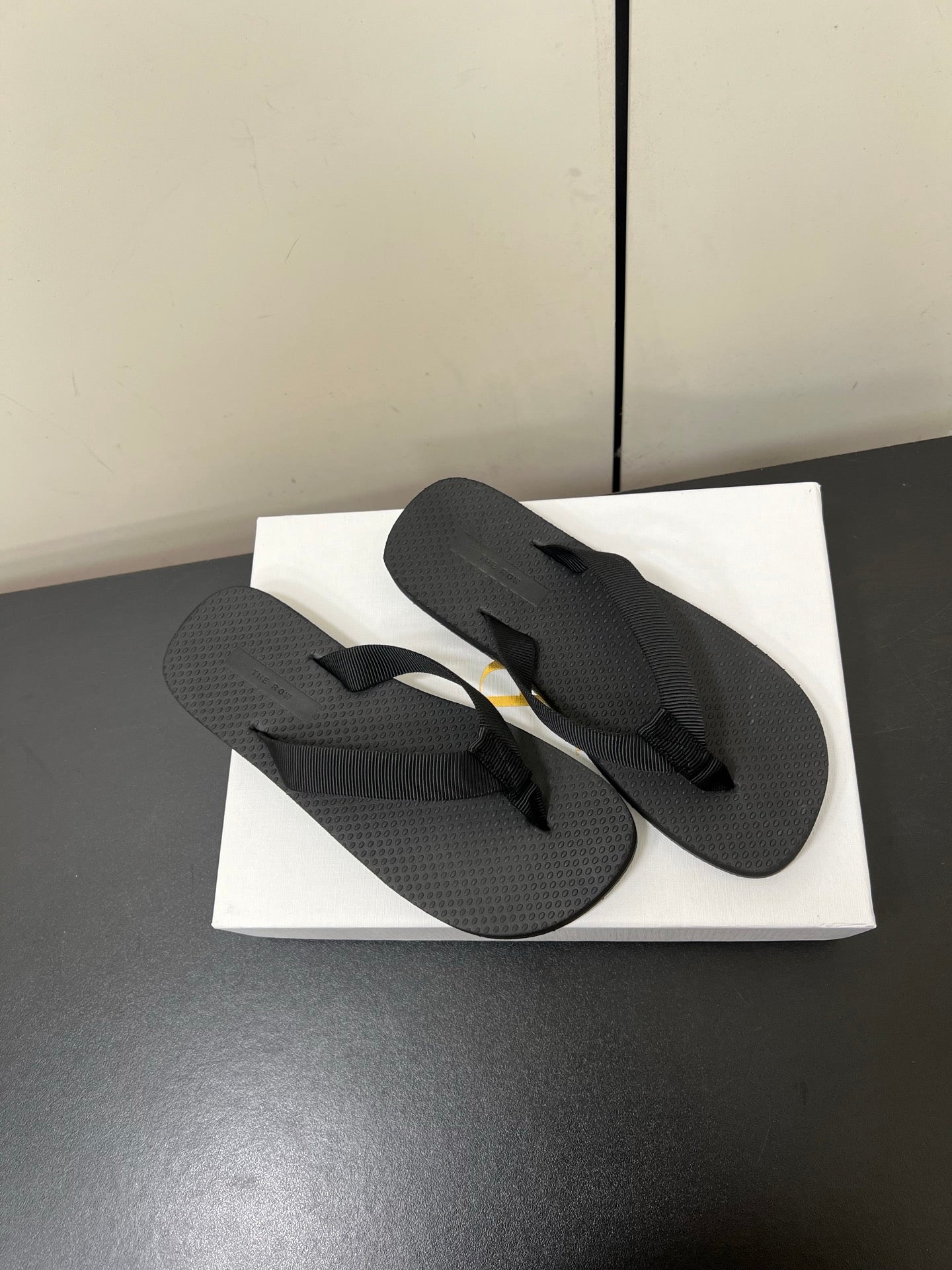 The Row Dune Flatform Thong Sandal In Black Rubber And Black Canvas 340028