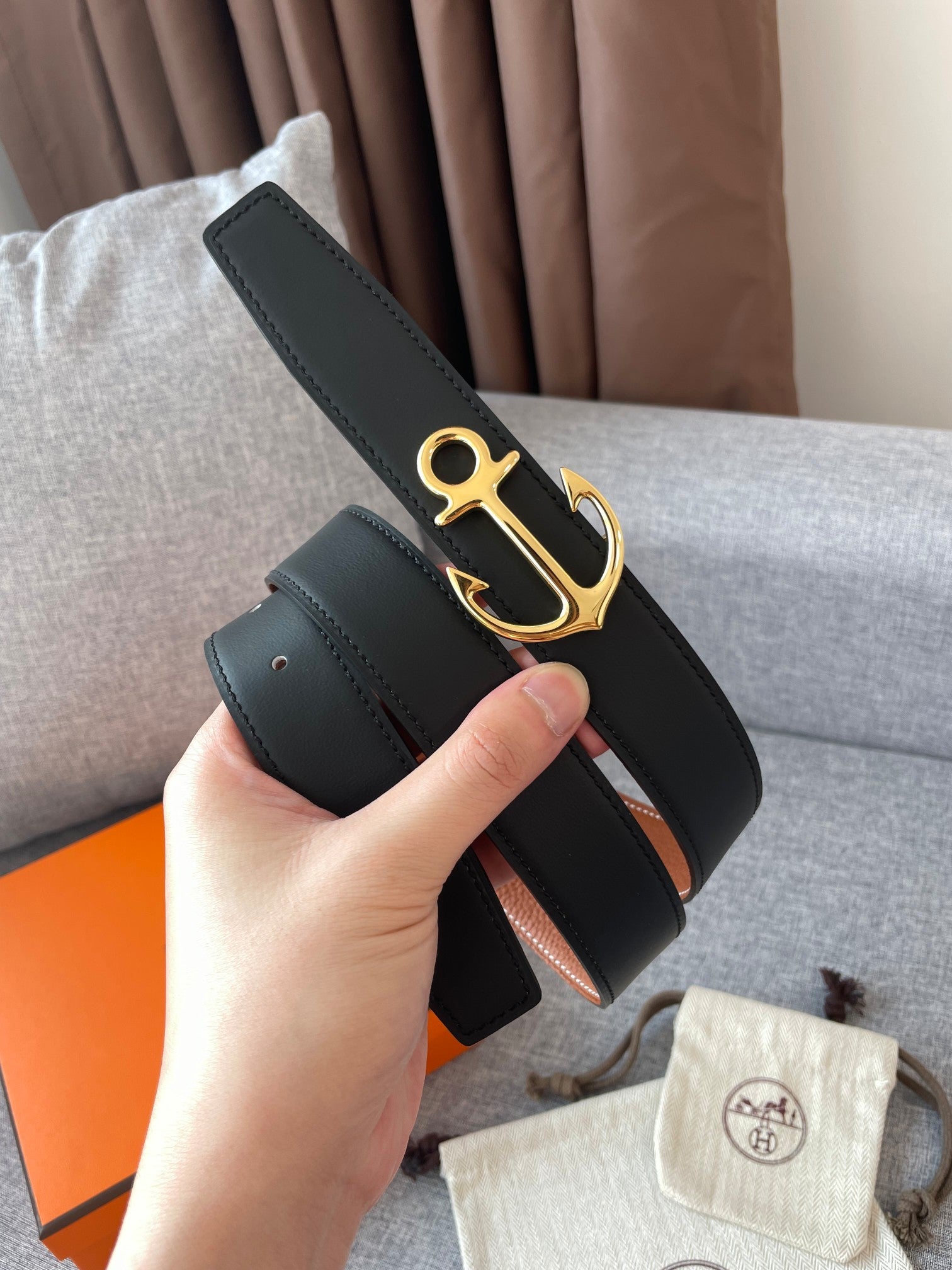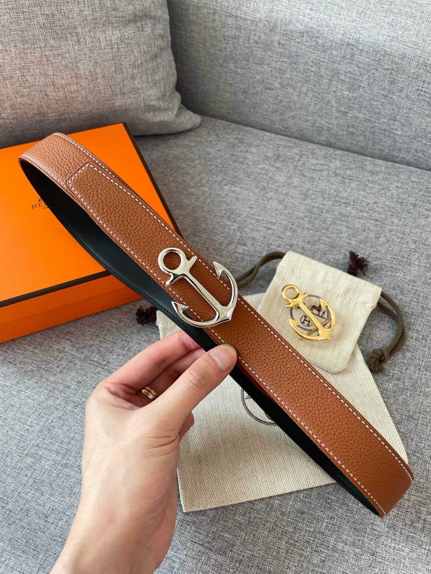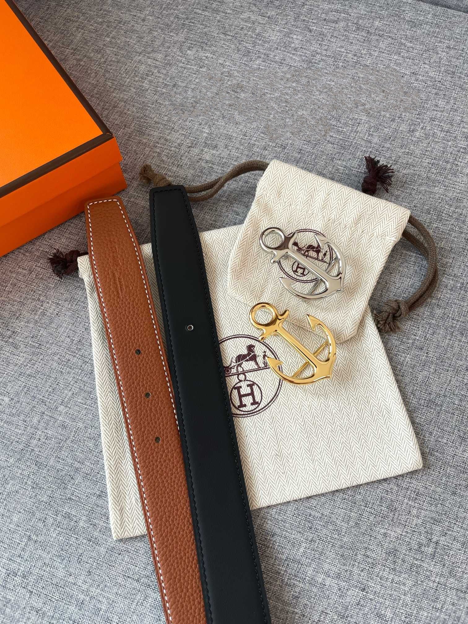 • H Buckle in permabrass plated metal.