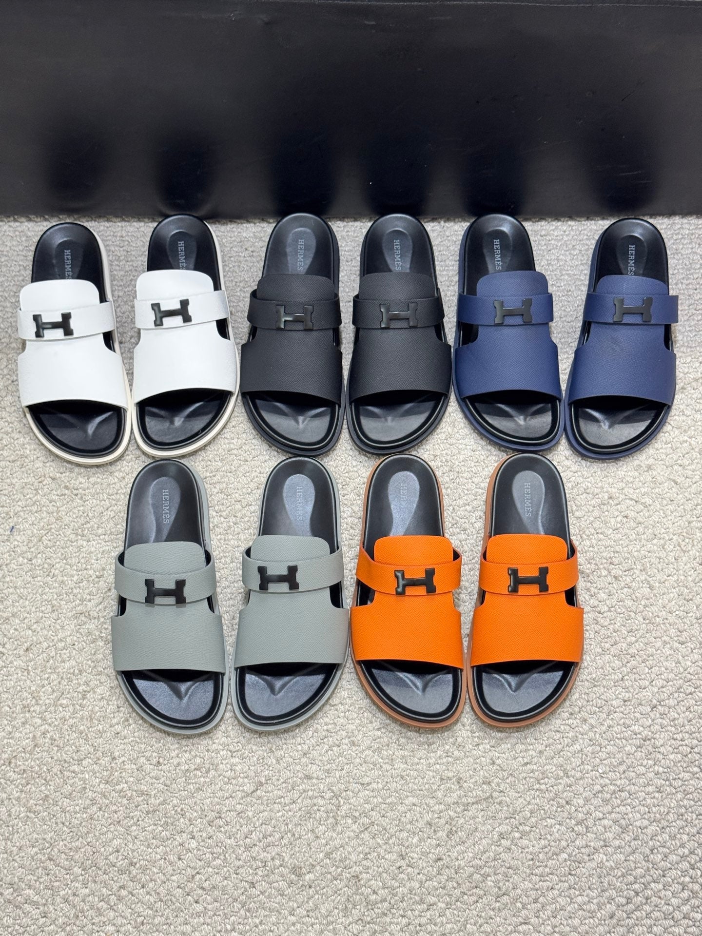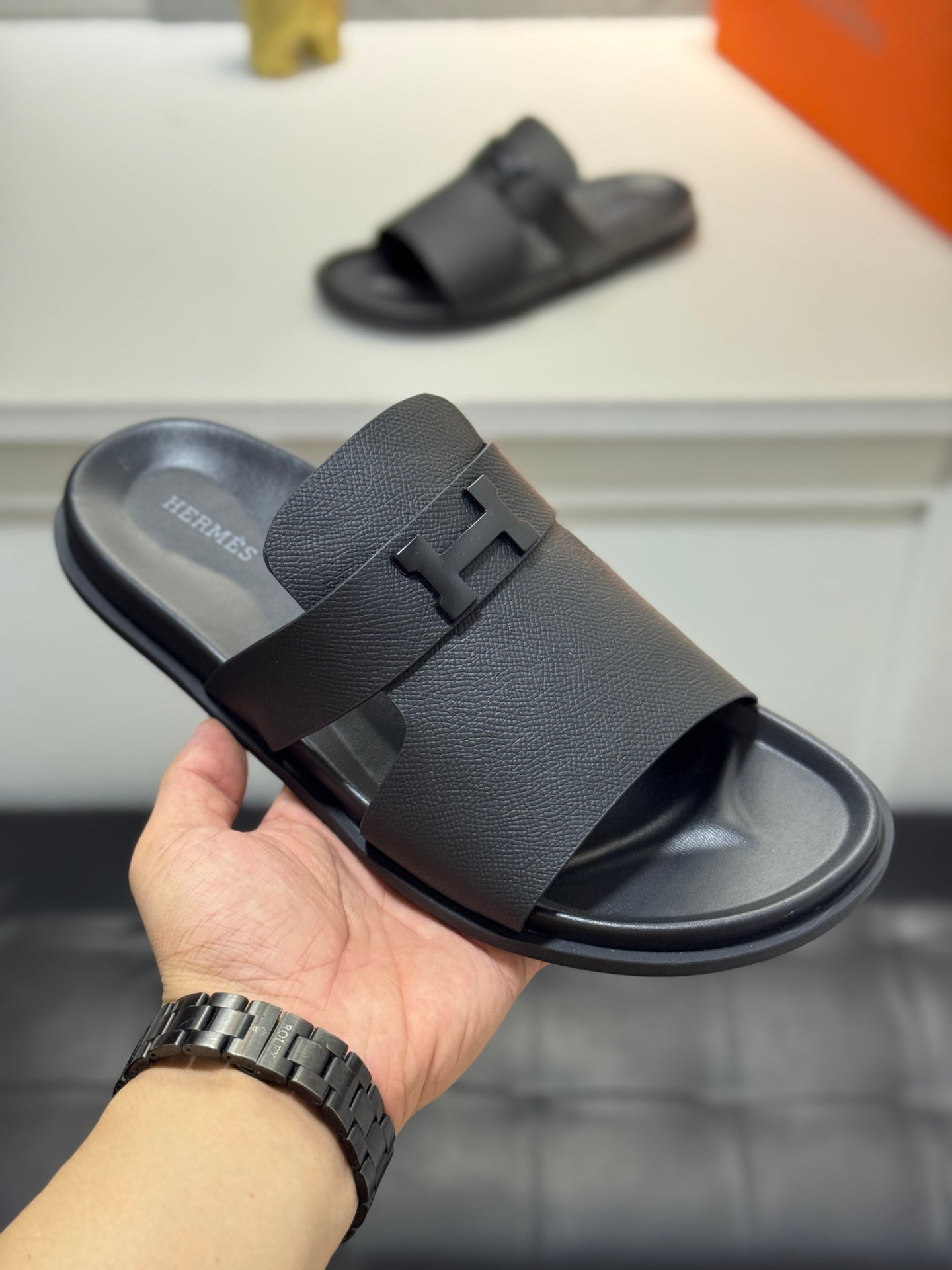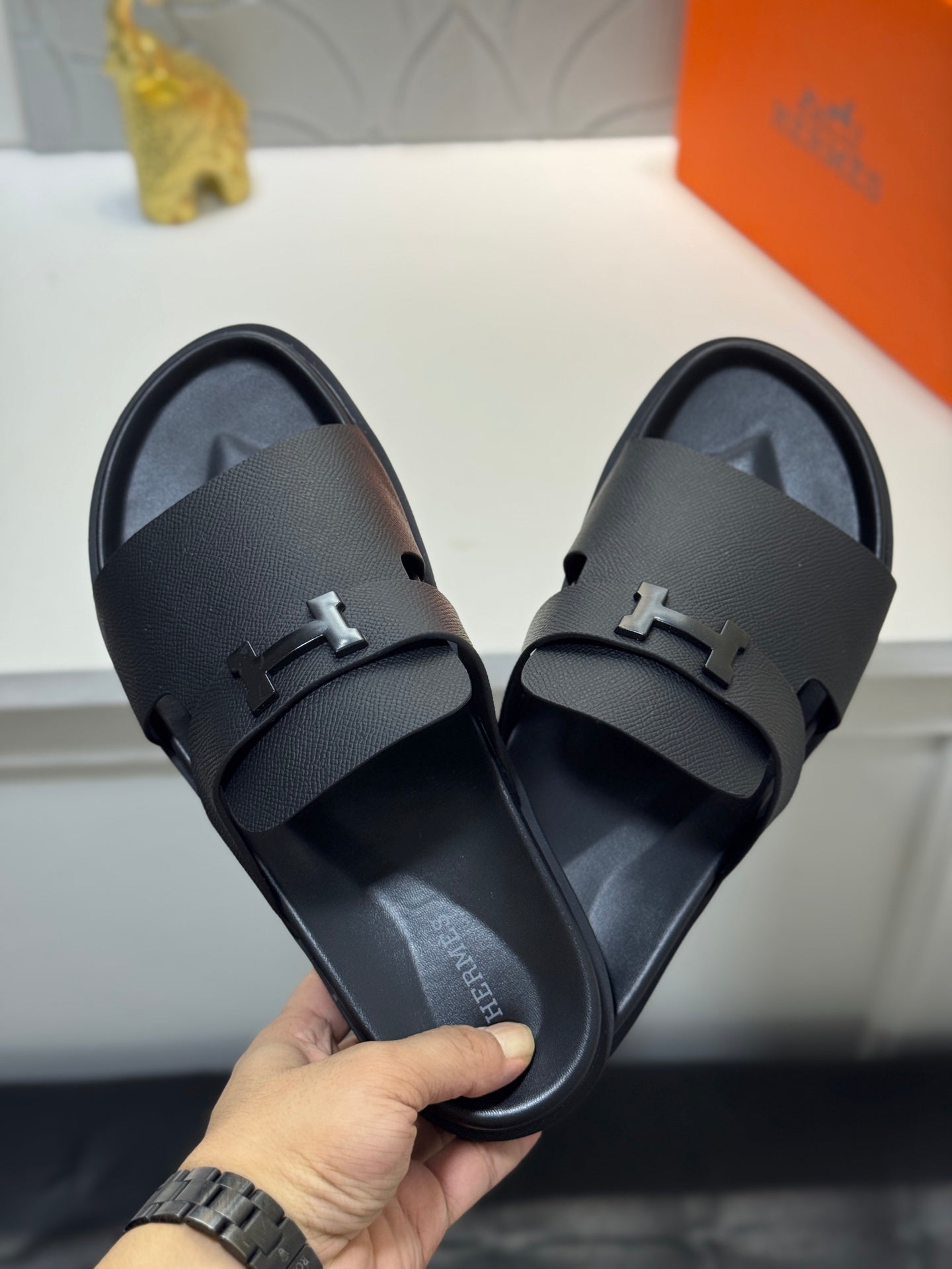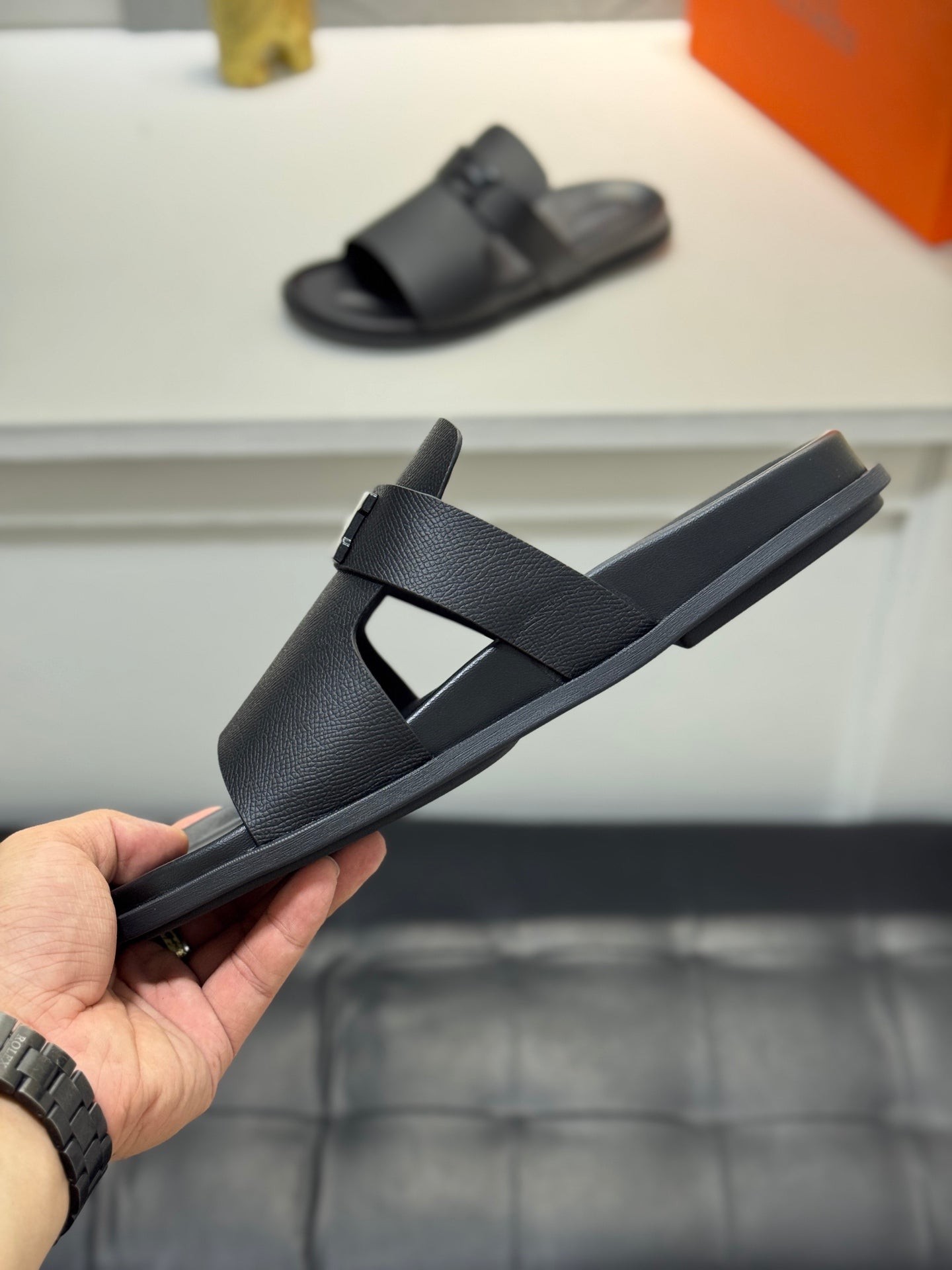 HM Oran H Noir Buckle Slippers in Black Cowhide 735255