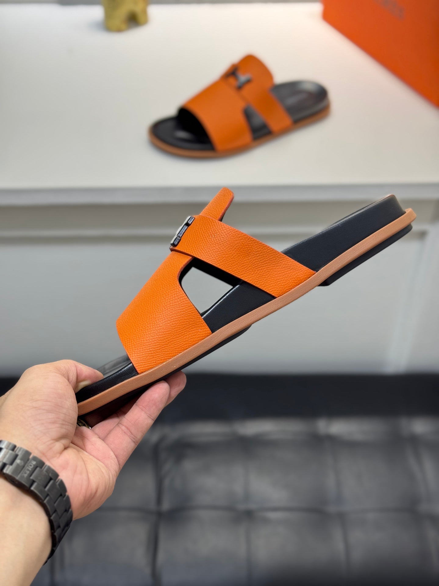 HM Oran H Noir Buckle Slippers in Orange Cowhide 735259