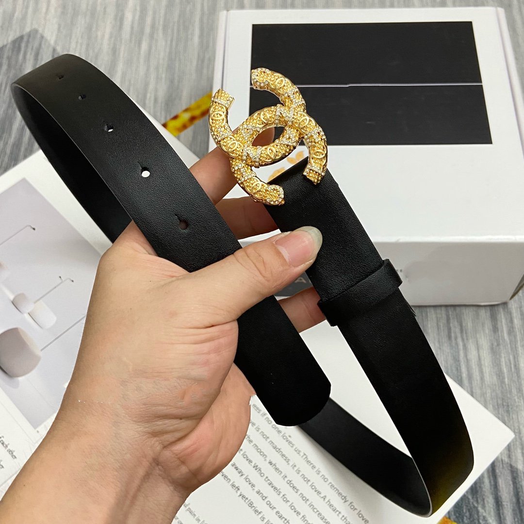 CC BELT 30MM BUCKLE GOLD DIAMOND LEATHER BLACK