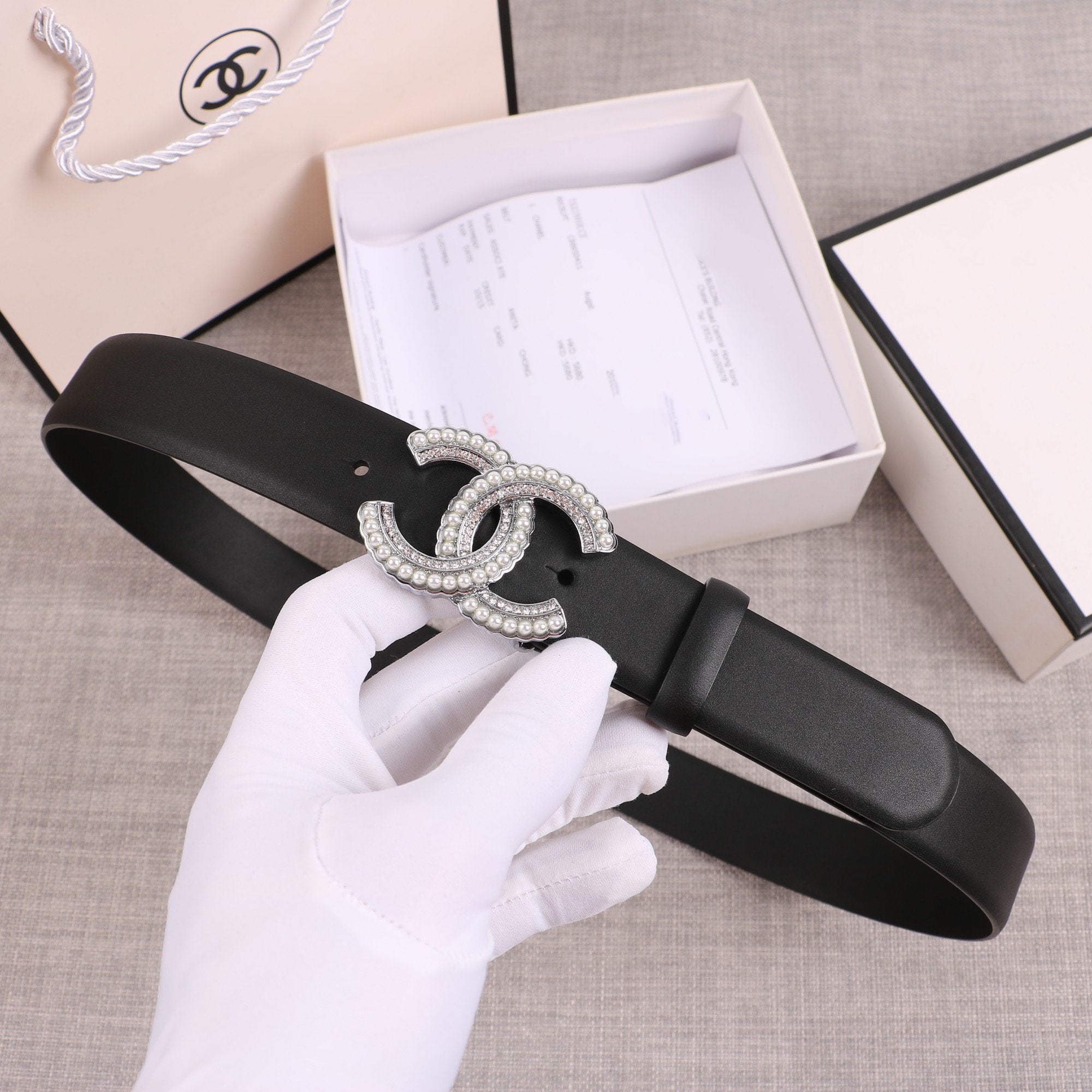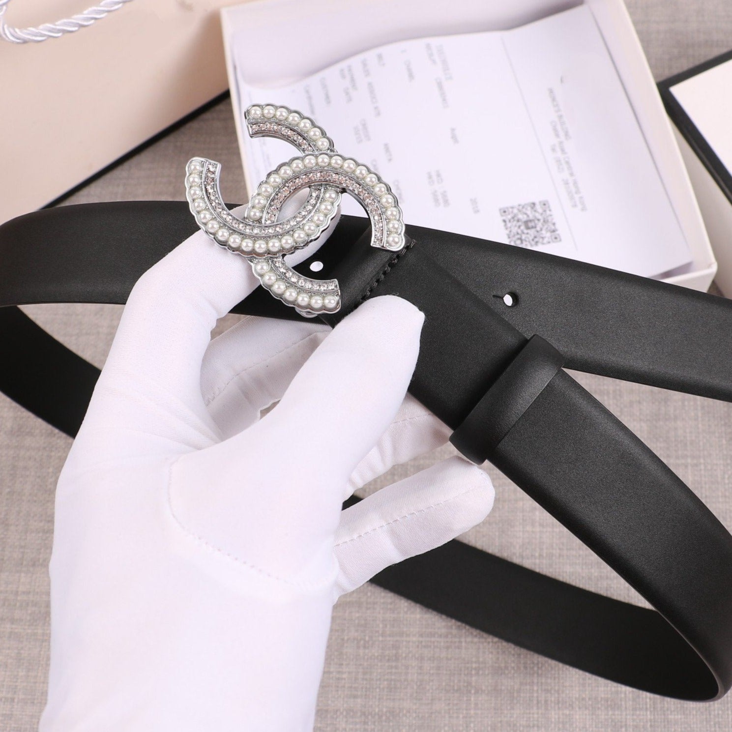 CC WOMEN'S BELT 3.0CM BUCKLE BLACK PEARL LEATHER