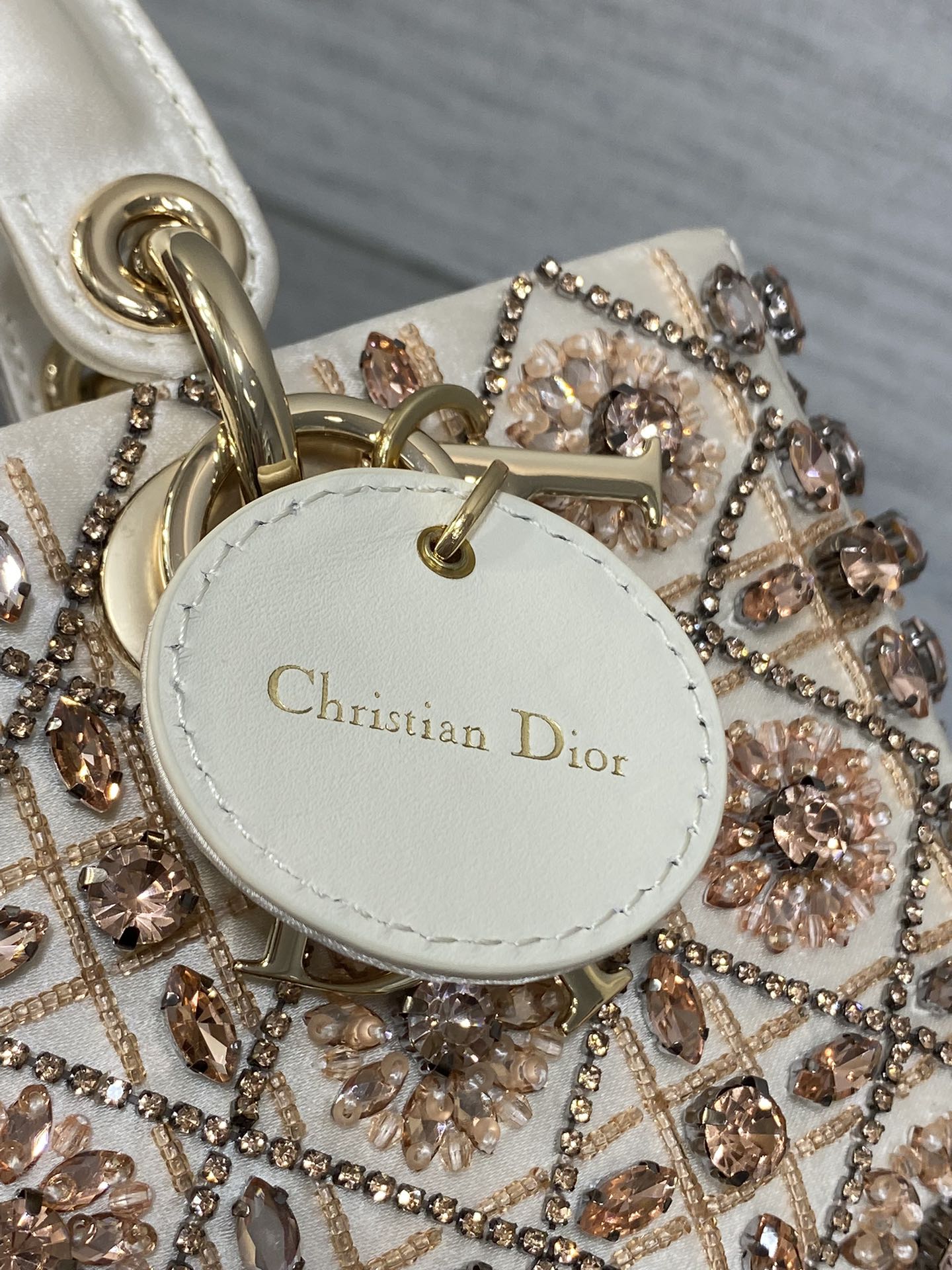 MINI 22 LADY BAG IN WHITE SATIN WITH COLORFUL EMBROIDERED BEADWORK