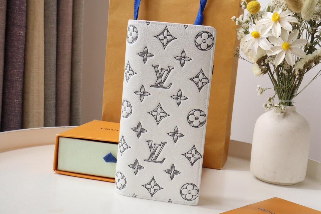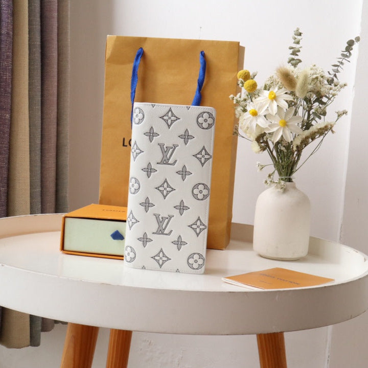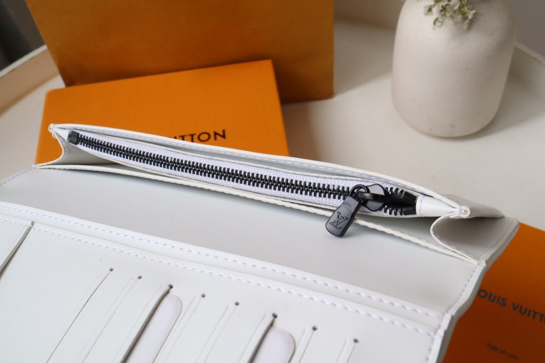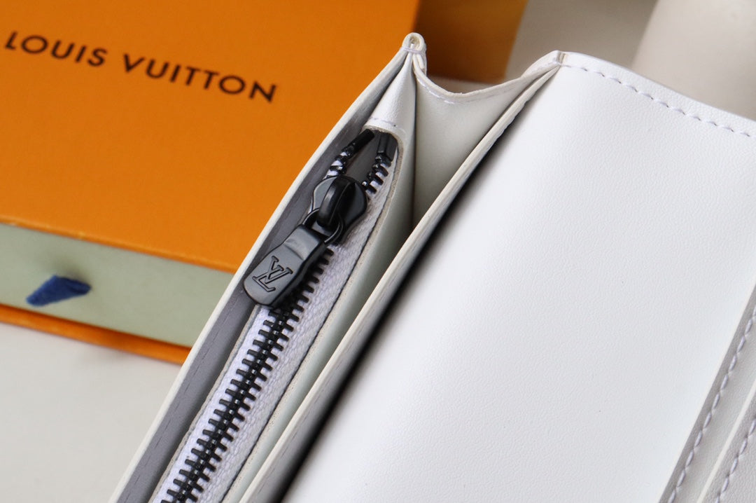 LV Brazza Wallet White Black Monogram Cowhide 248062