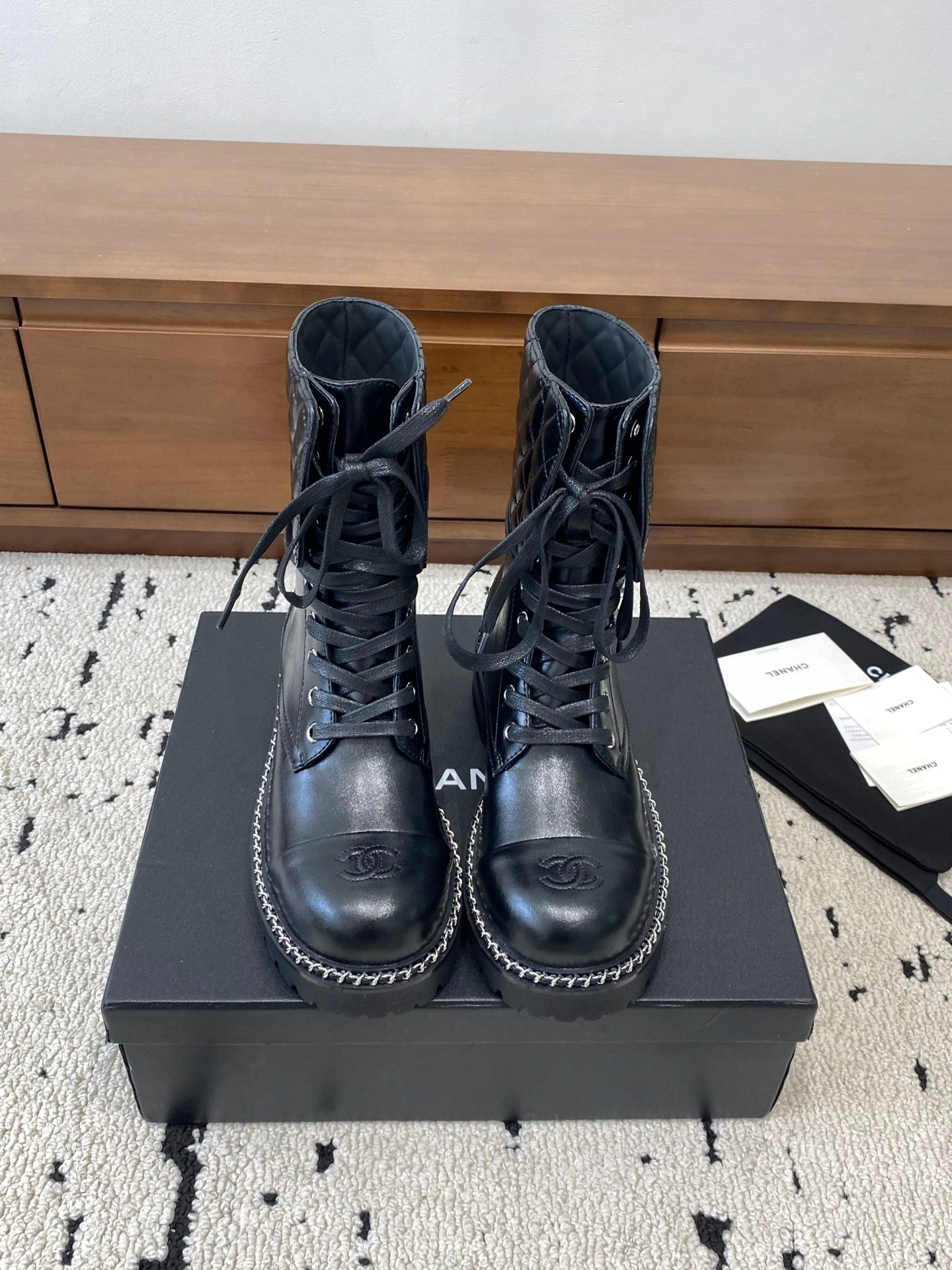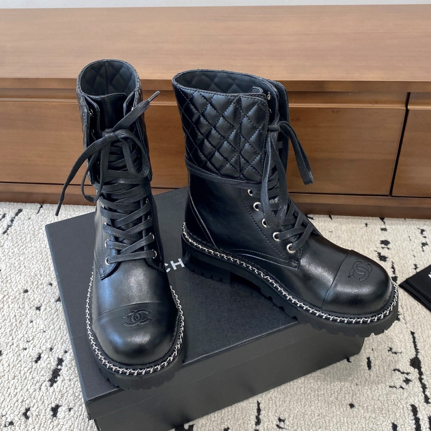 CC Ankle Boots Flat Quited Black Calfskin 529286