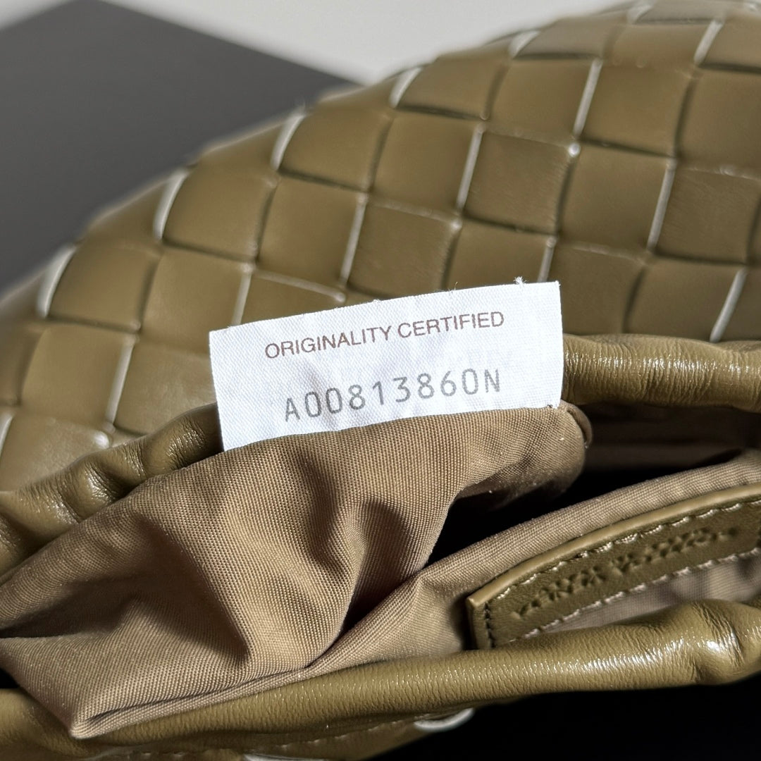 BV Small Dustbag 21cm Travertine Intrecciato Calfskin Leather