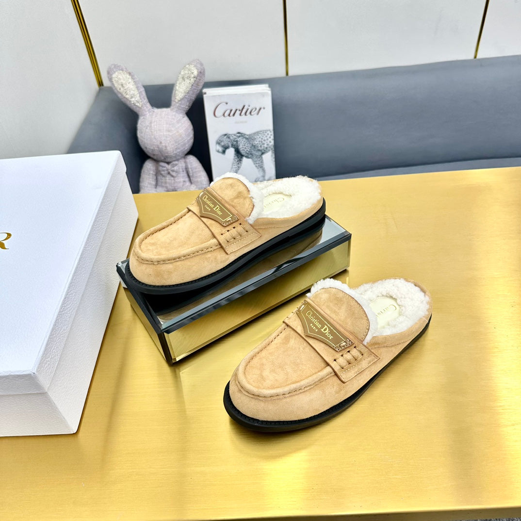 CD Boy Mule In Beige Vintage Suede With Wool Fleece Lining 111830