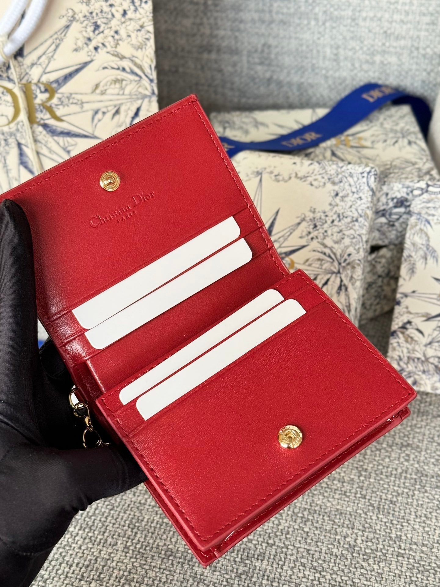 CD Caro 11cm Compact Wallet Shiny Red Calfskin