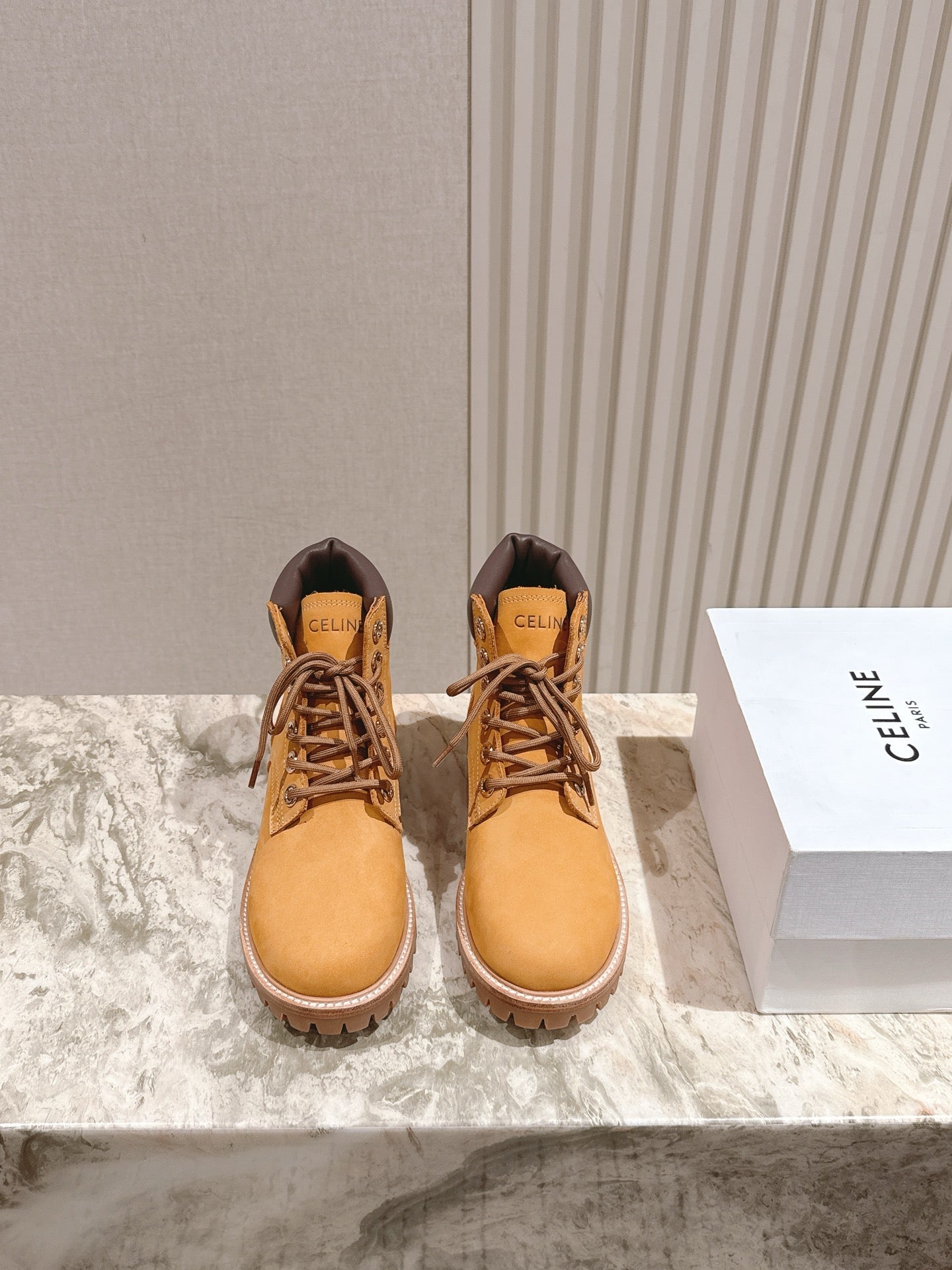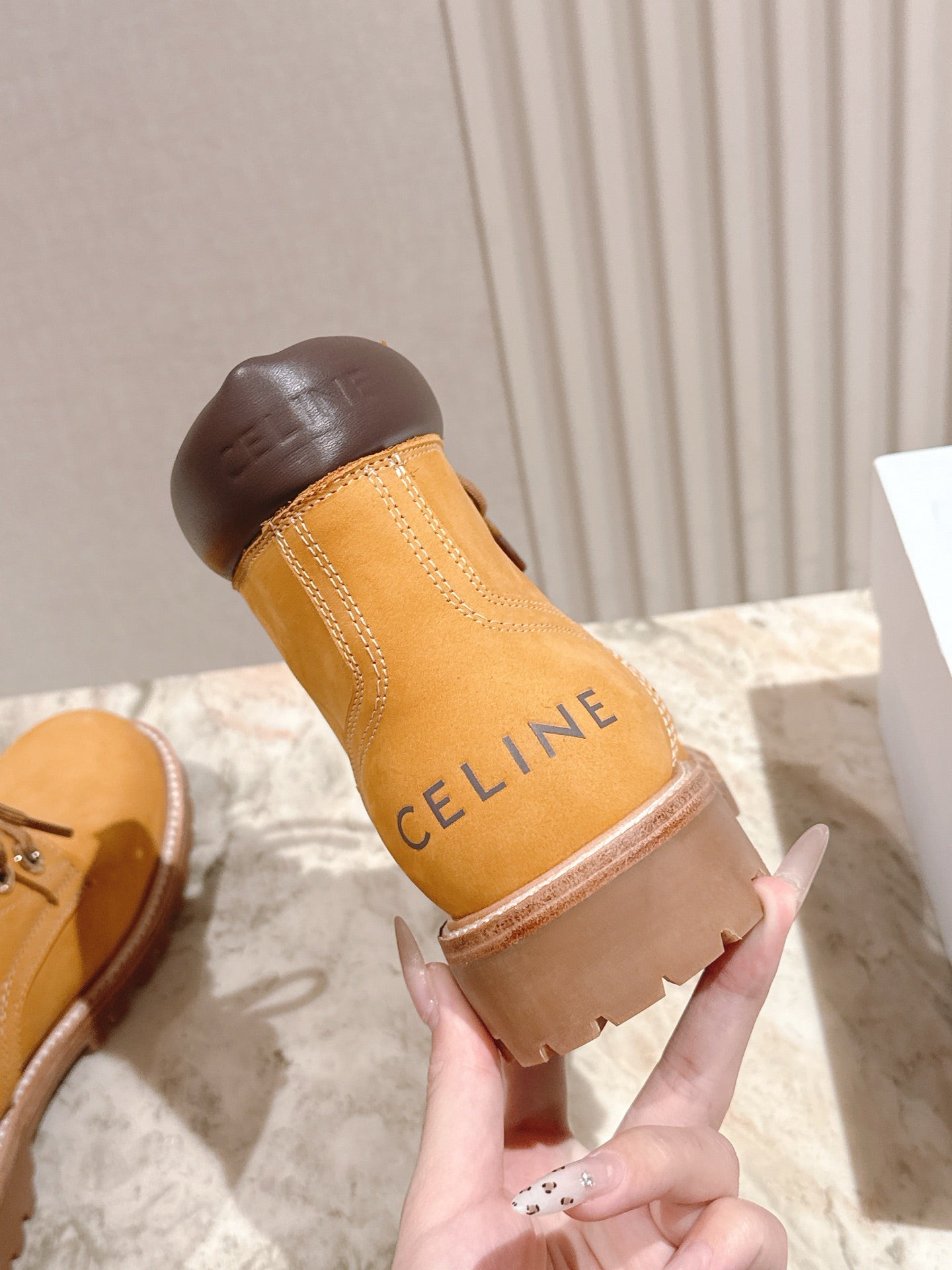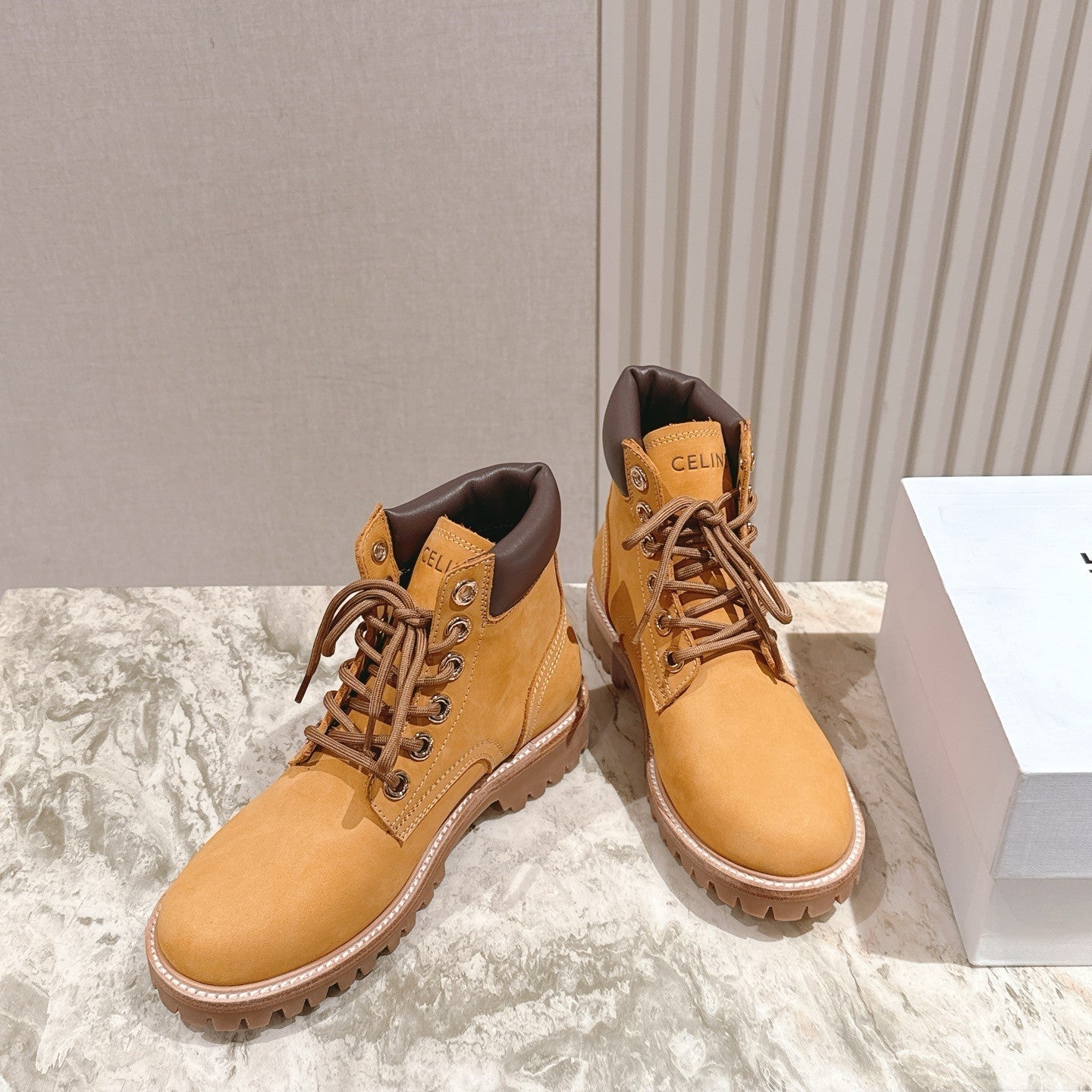 CELINE Kurt Lace-Up Martin Short Boots Light Brown Nubuck Calfskin 452782