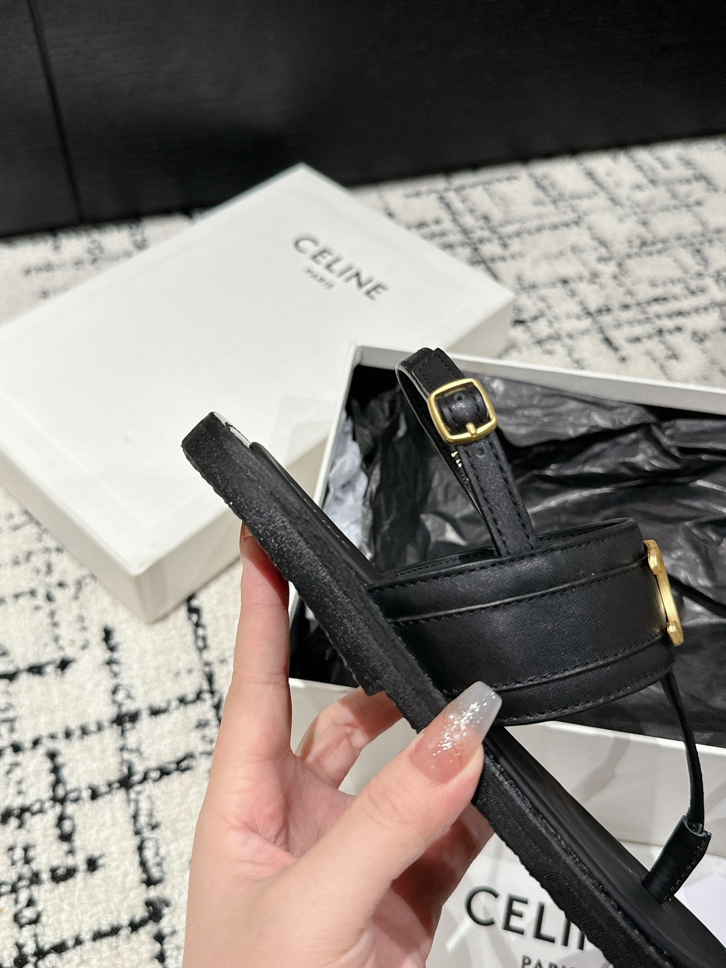 THONG SANDAL IN BLACK CALFSKIN