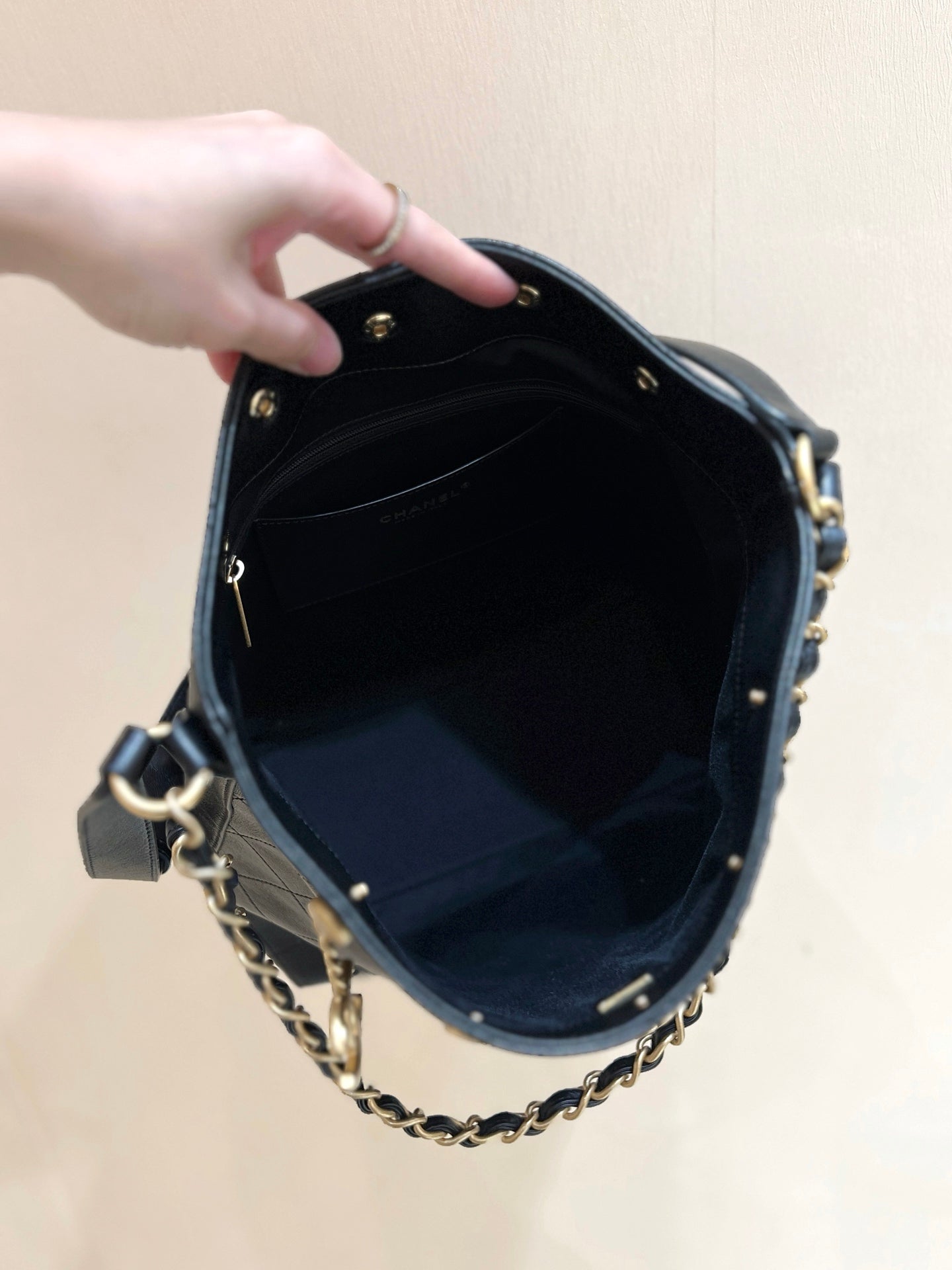 CC 25P Rivet Bucket Bag Gold Hardware in Black Polished Lambskin