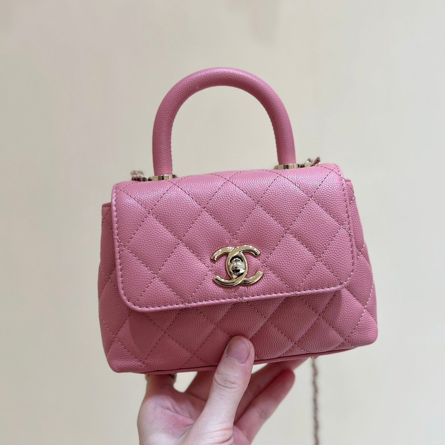CC Super Mini Handle Bag 14.5 Pink Leather Gold Hardware