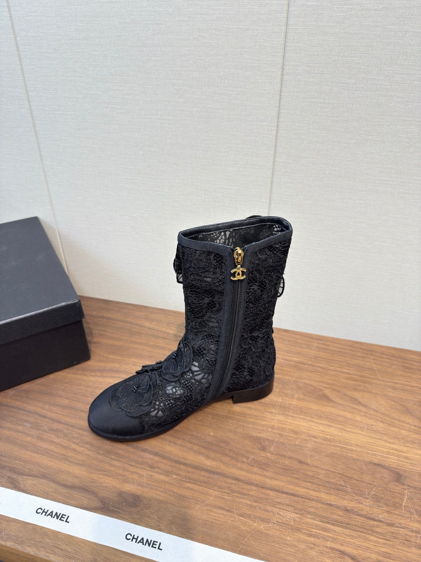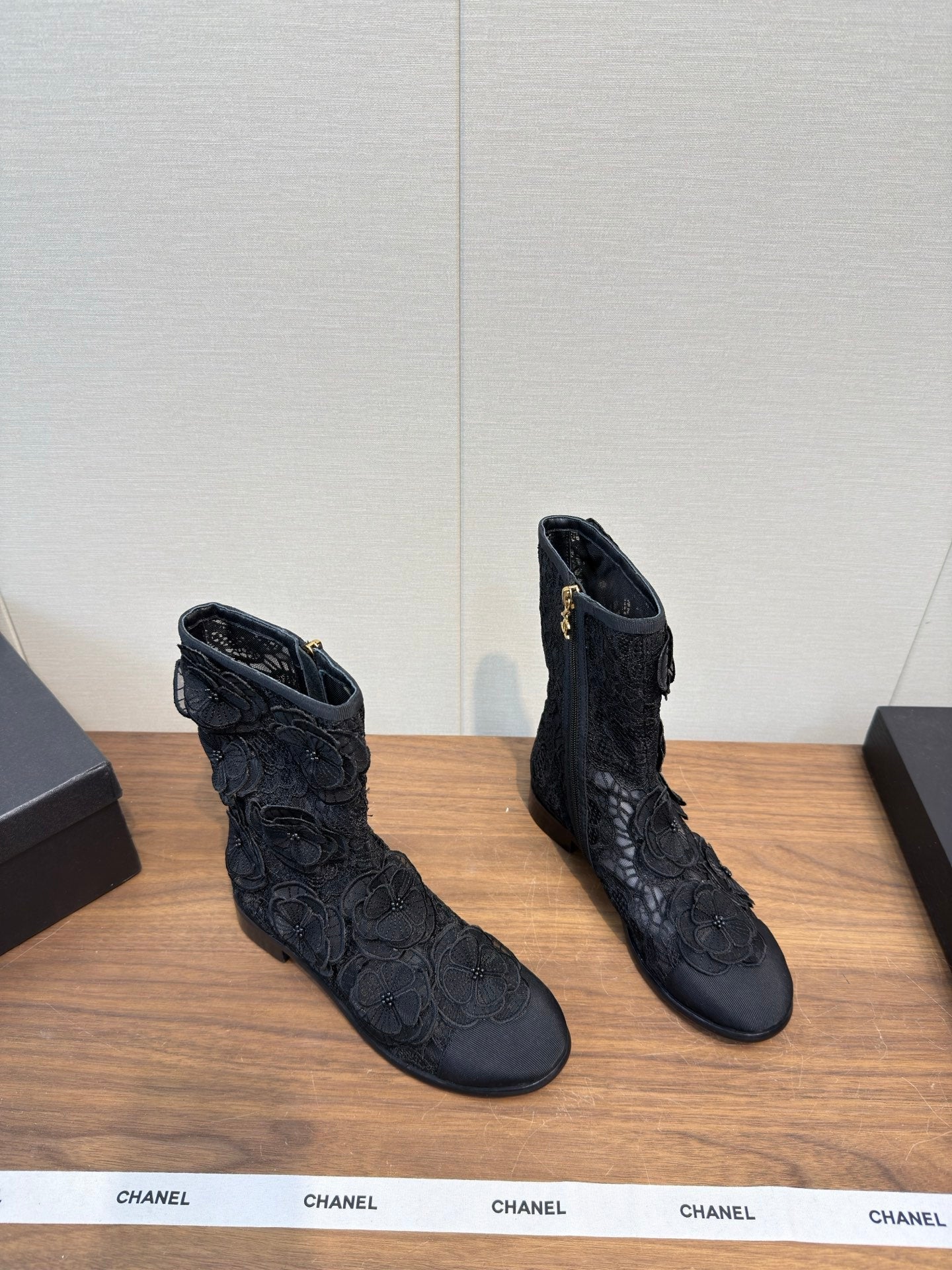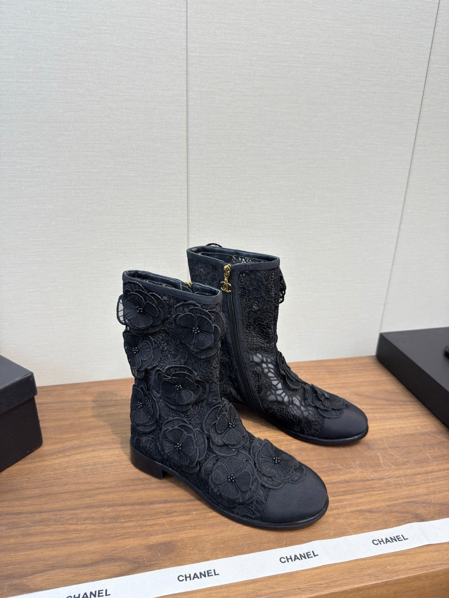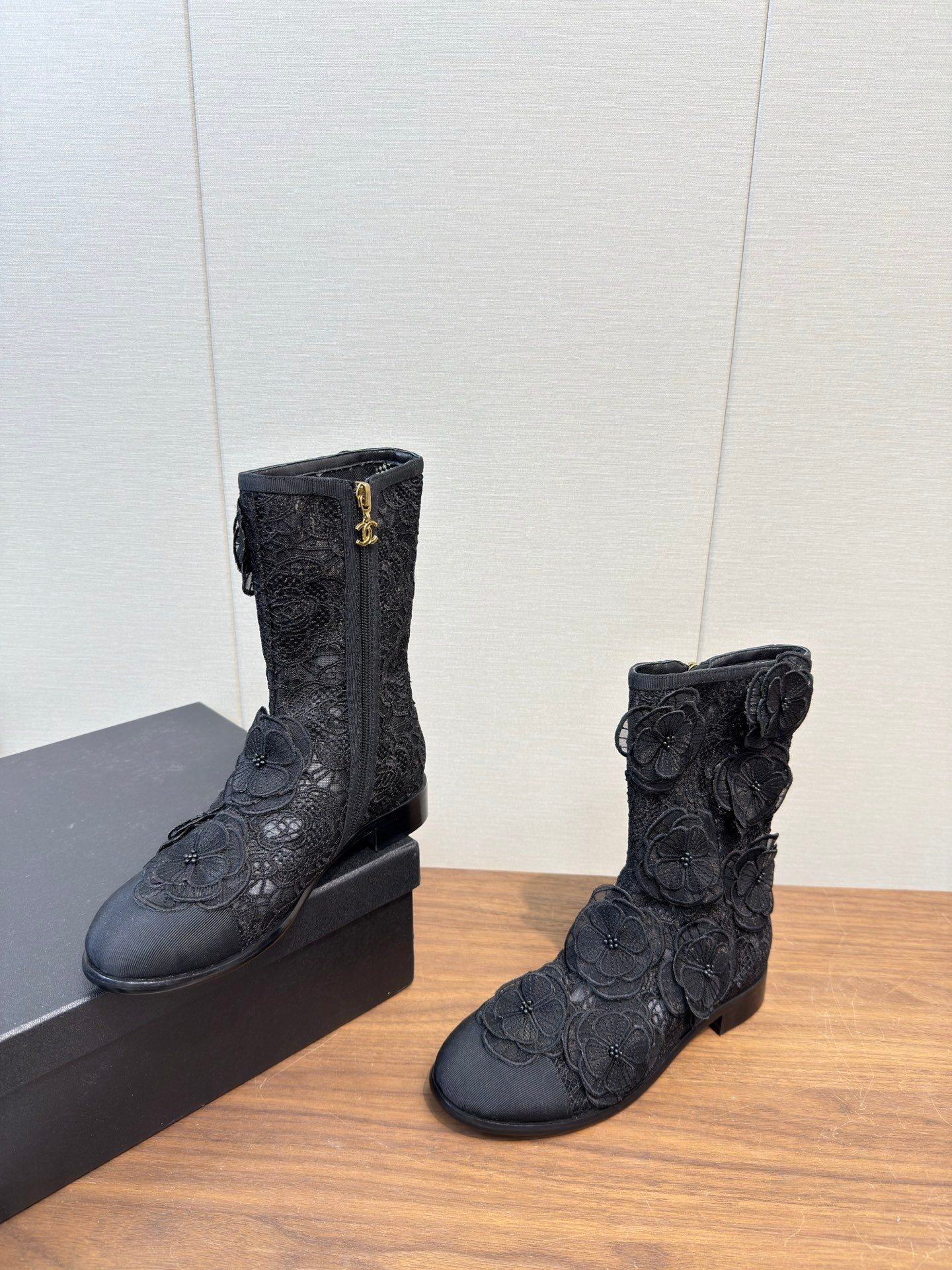 CC 25b Camellia Flower Short Boots 40mm Black Mesh & Frabic 429749