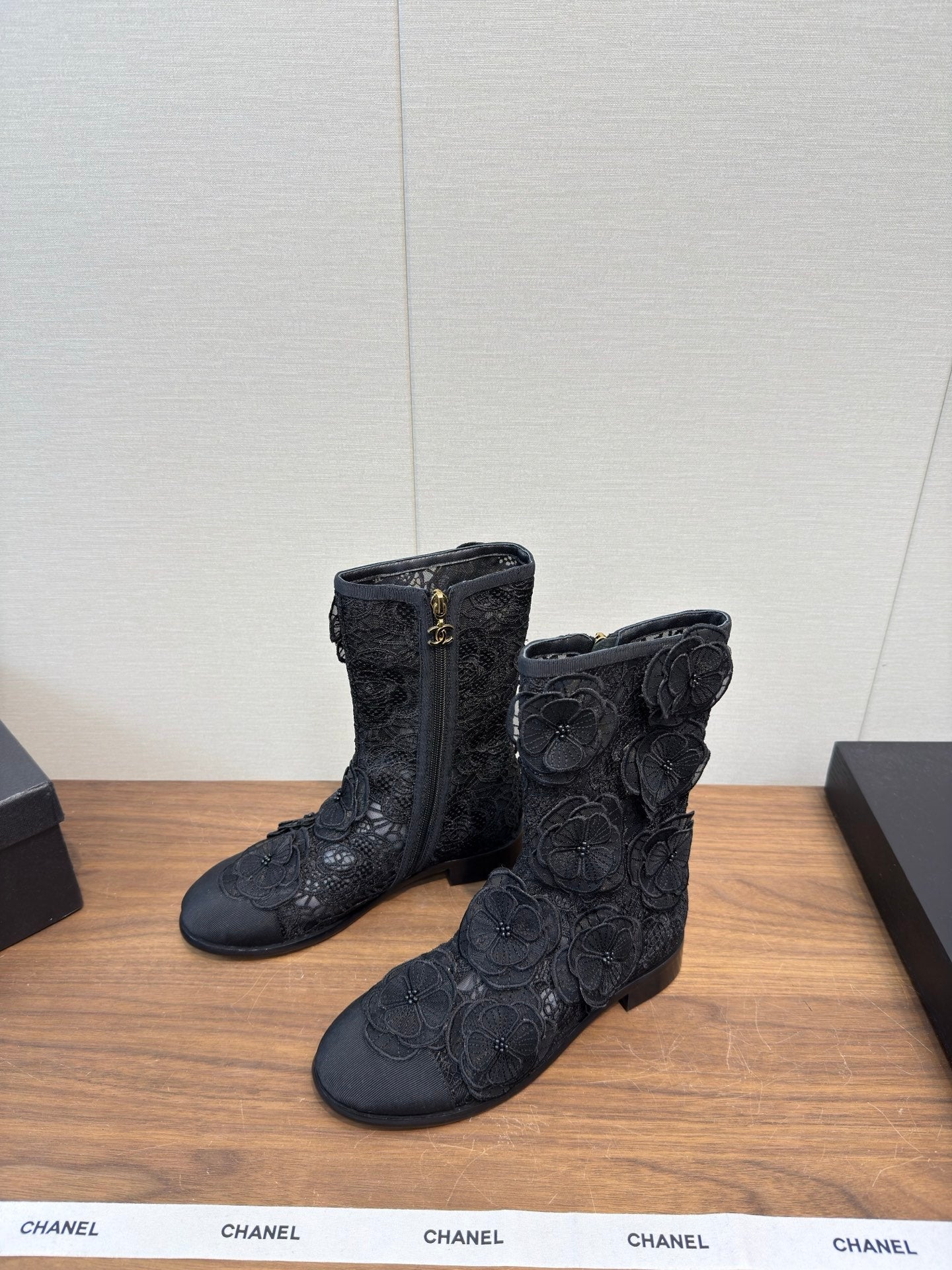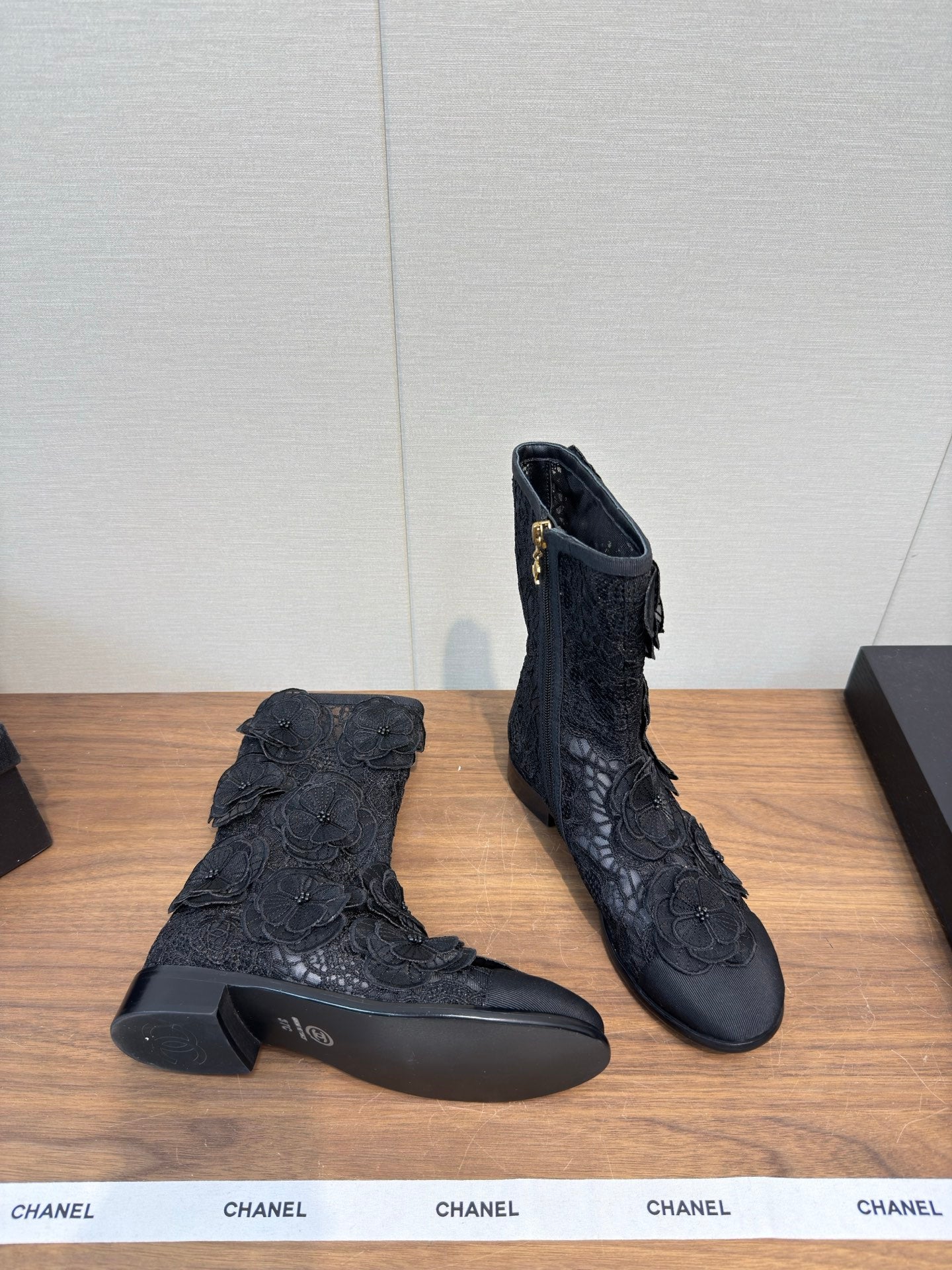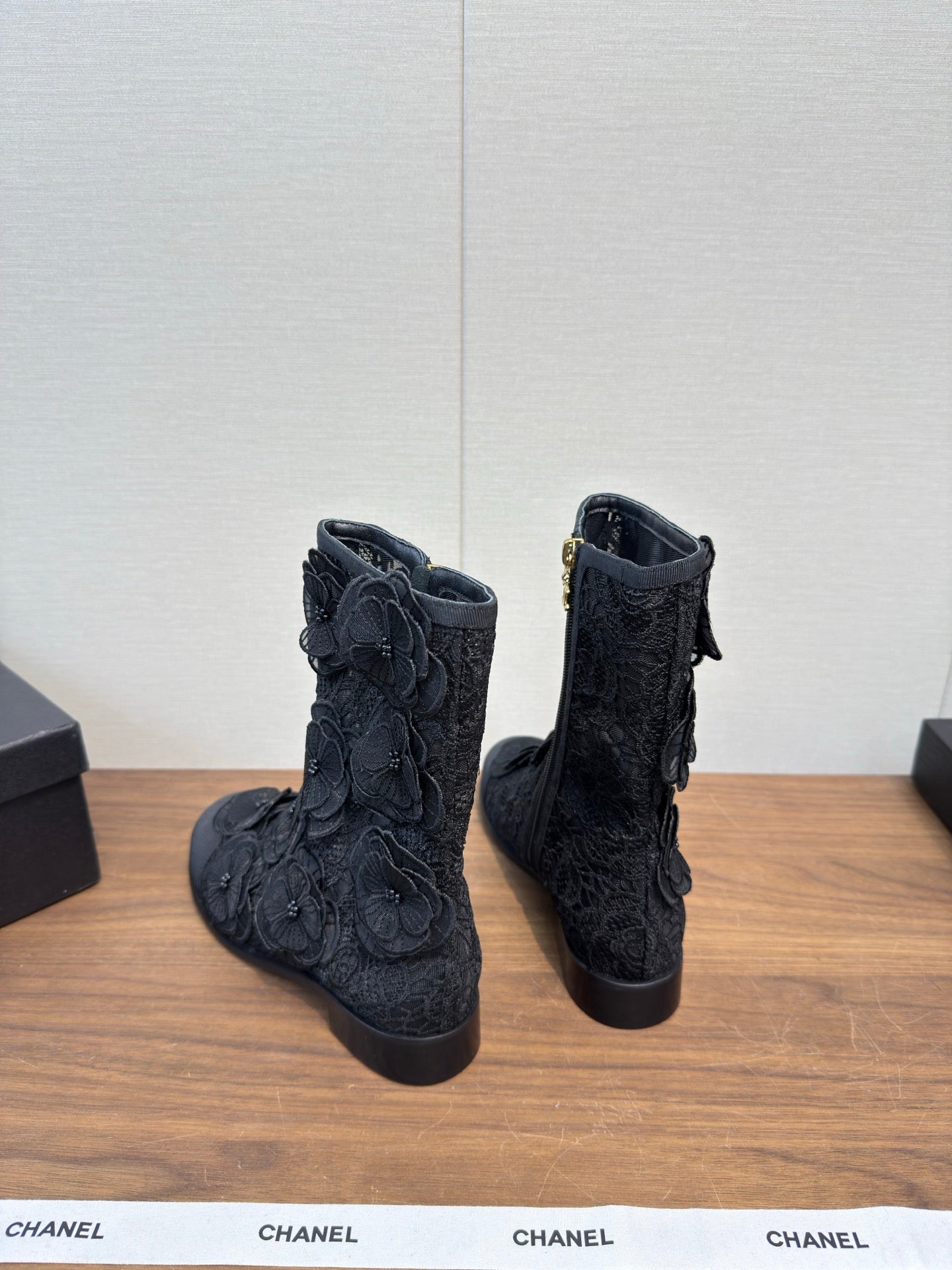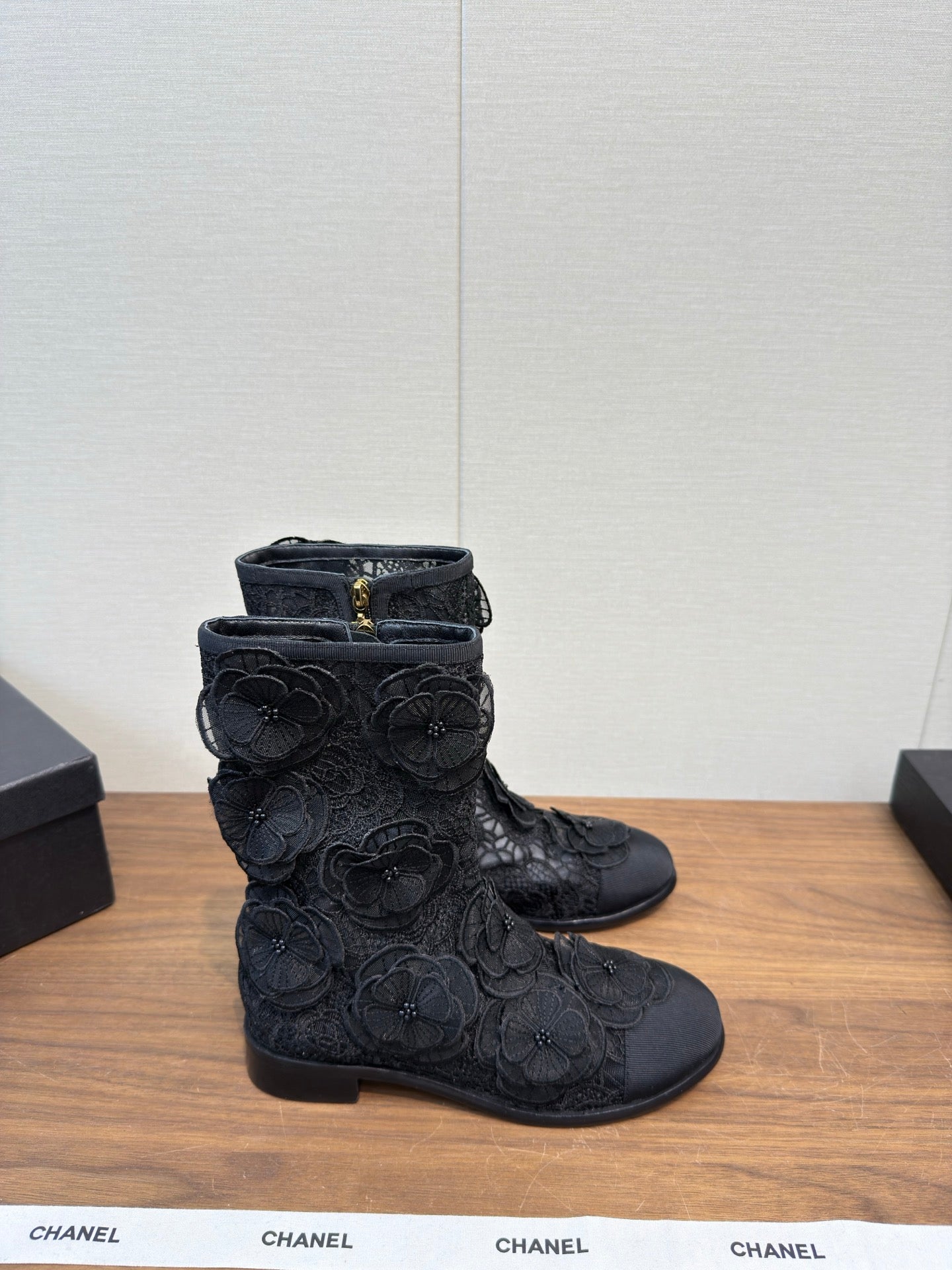 CC 25b Camellia Flower Short Boots 40mm Black Mesh & Frabic 429749