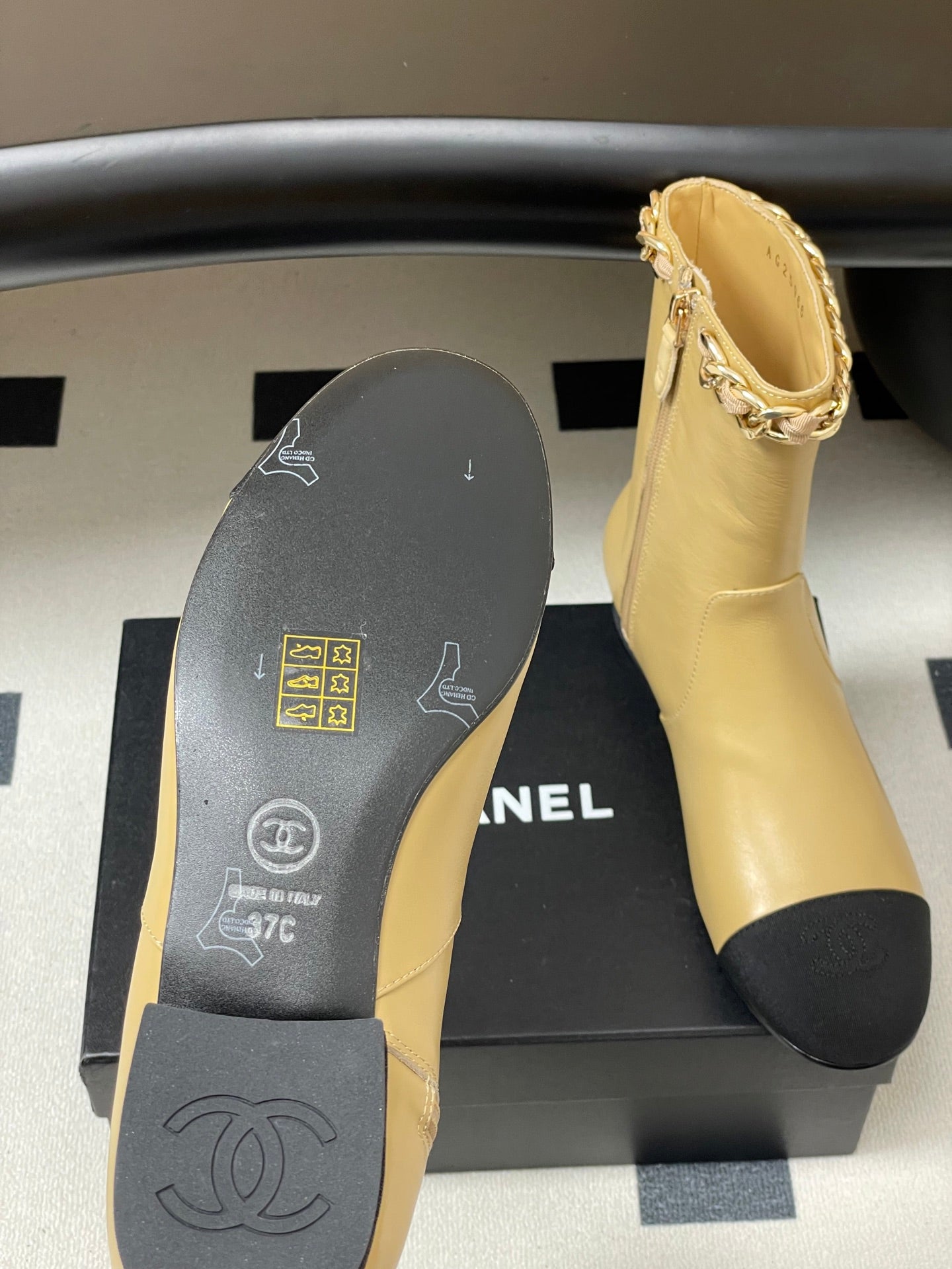 CC 25B Chain Short Boot 25mm Black Beige Denim Cowhide 423152